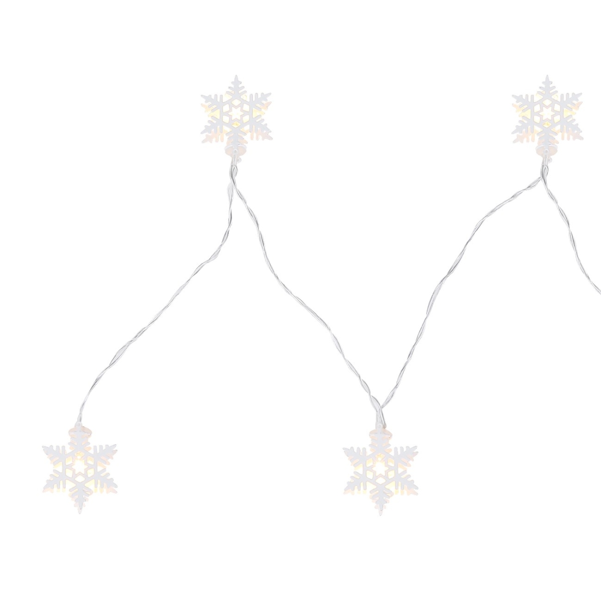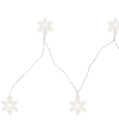 Na plastičnom kablu dužine 165 cm pričvršćeno je 10 pahulja u intervalima od 15 cm. Kabl za snabdevanje dužine 30 centimetara omogućava varijabilno podešavanje položaja ukrasne lampe. Ovaj LANAC LED svetla (osim baterije) sa prekidačem daje vašem domu prijatan sjaj u vreme Božića.
