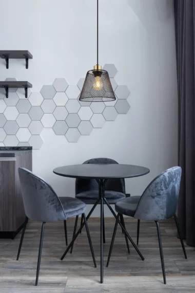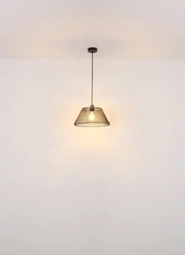 Viseća lampa BAKU nudi jedinstven dizajn, koji je definisan okruglim telom napravljenim od crnog mat lakiranog metala. Zaobljeno telo je zaokruženo metalnim mrežastim abažurom u crnom mat lakiranom završnom sloju i zlatnoj, antičko-optičkoj boji. Dimenzija abažura je ø 200 mm i daje celini elegantan i klasičan oblik. Viseća lampa BAKU je idealan izbor za svakoga ko traži jedinstveno i stilsko rešenje za svoje osvetljenje. Sa svojim okruglim dizajnom i prelepim abažurom, učiniće svaku prostoriju centrom pažnje.