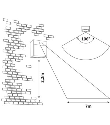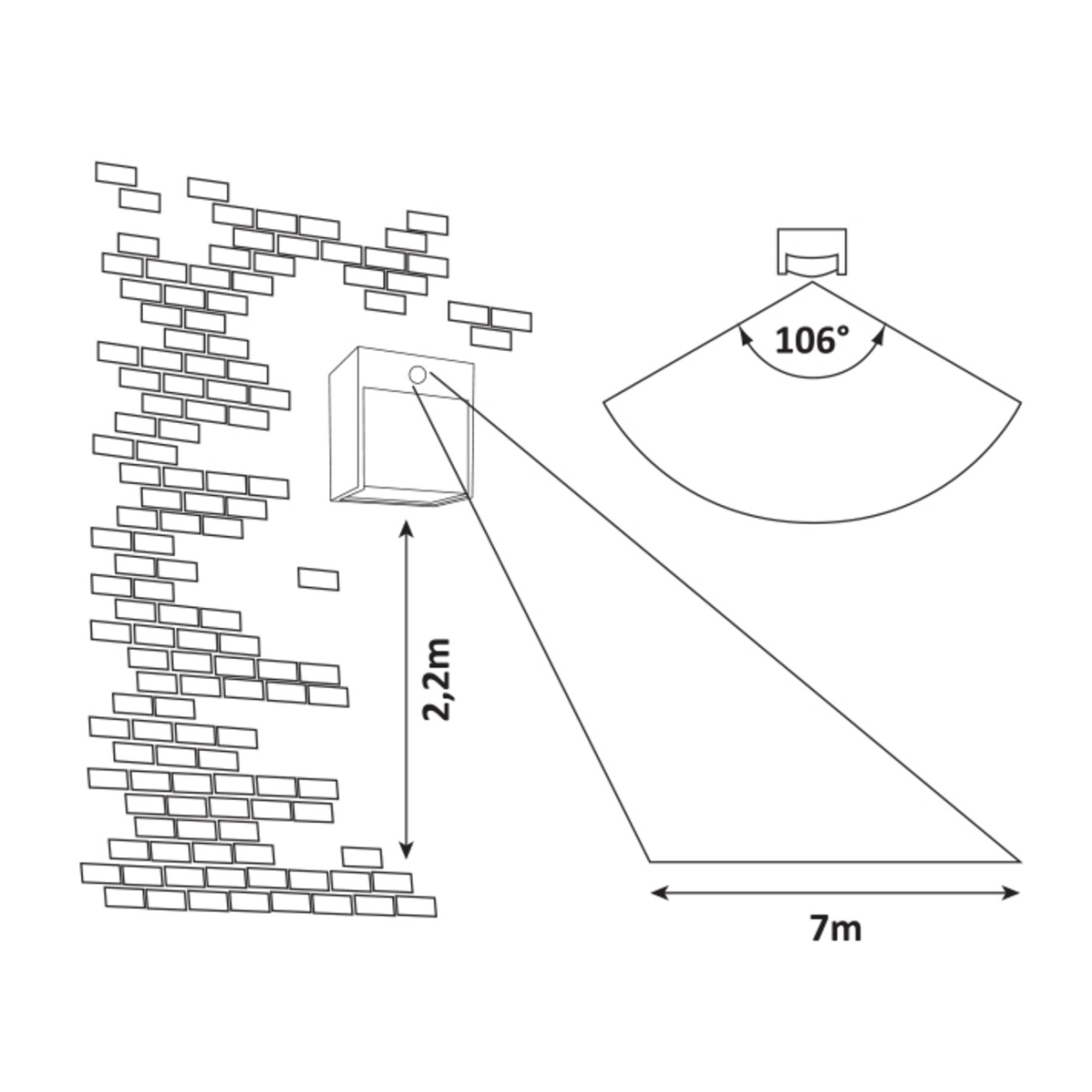 Balimo spoljna zidna lampa modernog stila sa senzorom pokreta je napravljena od aluminijuma u mat beloj boji i dopunjena je belim plastičnim abažurom. Ova kvadratna lampa je odličan izbor za terasu u blizini ulaznih vrata, ali možete je postaviti bilo gde na spoljašnjem zidu vaše kuće gde je osvetljenje potrebno za bezbedno kretanje. Balimo sadrži ugrađeni LED izvor svetlosti snage 12W, svetlosnog toka od 560 lumena i životnog veka od 25.000 sati. Sijalica ima temperaturu boje od 4.000K i shodno tome sija prirodnom belom svetlošću. Senzor detektuje kretanje sa udaljenosti od 7 metara pod uglom gledanja od 106°. Dimenzije ovog spoljnog svetla su sledeće: širina 120mm, visina 130mm, rastojanje od zida 95mm. Poseduje IP44 zaštitu koja obezbeđuje da je zaštićen od upada predmeta prečnika do 1 mm i od prskanja vode iz bilo kog smera. Na spoljnu zidnu lampu Balimo sa senzorom pokreta nudimo 5 godina garancije.