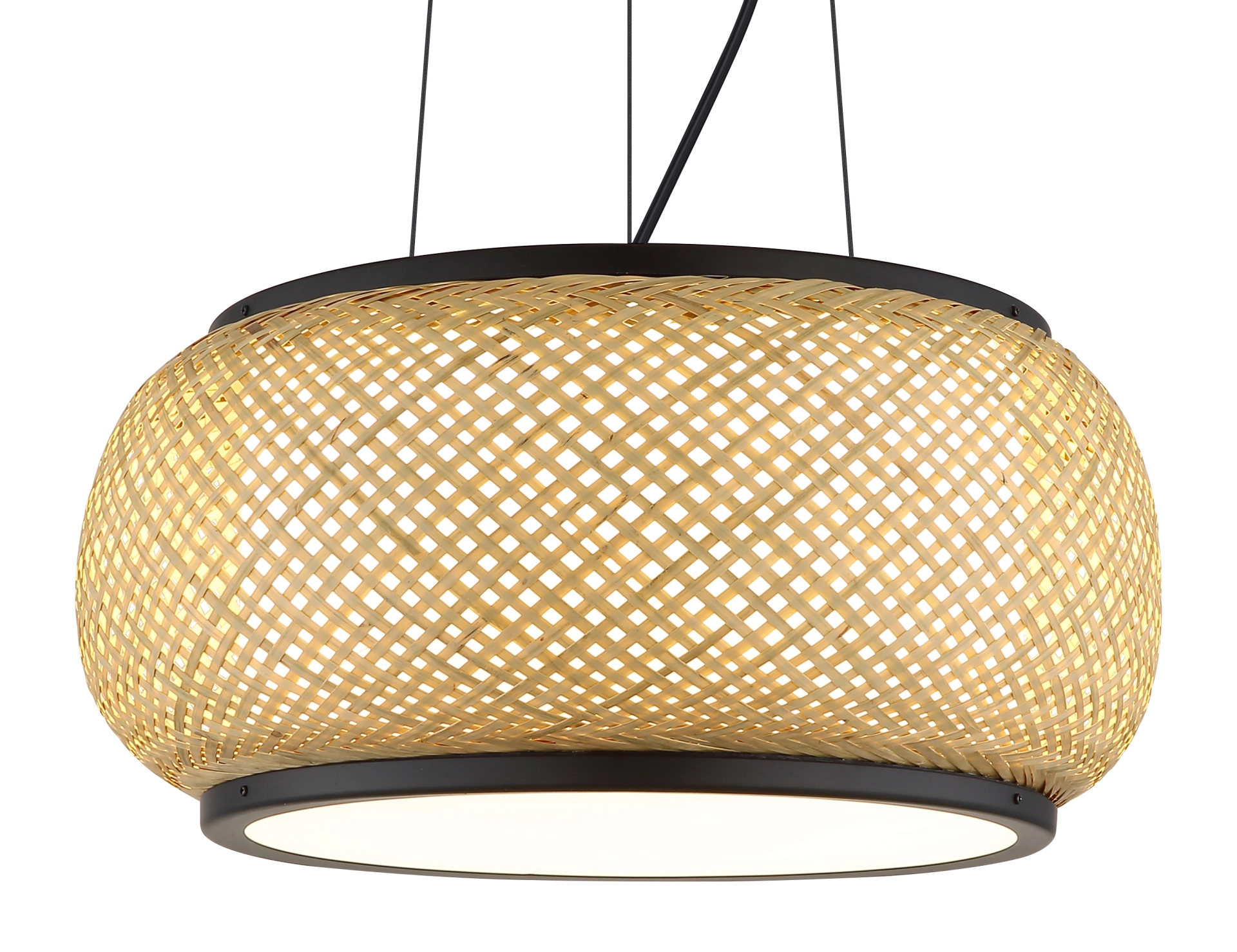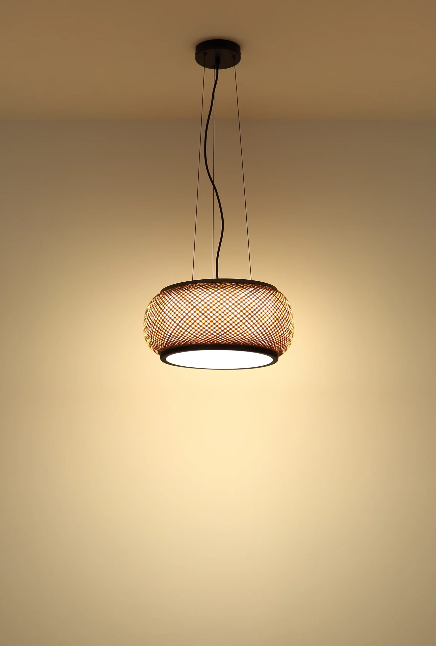 Viseća lampa BAMBORA dodaje dašak vintage šarma vašem domu svojim lukovičastim, okruglim abažurom napravljenim od prirodnog bambusovog tkanja. Mat crni metalni okvir stvara stilski kontrast sa organskim izgledom bambusa. Unutra, difuzor od opal belog akrila i bele tkanine obezbeđuje meko, bez odsjaja osvetljenje. Sa prečnikom od 380 mm, BAMBORA je savršena za trpezarije, dnevne sobe ili spavaće sobe koje traže ugodnu atmosferu. Integrisana LED tehnologija isporučuje 1560 lumena i, zahvaljujući CCT funkciji, omogućava besstepeno podešavanje temperature boje od 3000 K (toplo bela) do 6000 K (dnevna bela). Funkcija memorije čuva vaša željena podešavanja, a fiksne boje nude dodatnu fleksibilnost stilizovanja. Bez obzira da li se koristi solo ili u više komada, BAMBORA je idealan izbor za stilsko osvetljenje sa prirodnim karakterom – dekorativna viseća lampa koja vešto spaja vintage dizajn sa modernom tehnologijom.