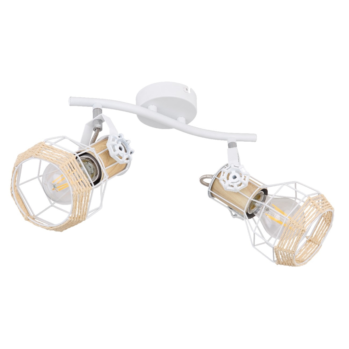 Ovaj reflektor serije BANA kombinuje moderno sa retro izgledom. Beli metal i prirodno drvo u kombinaciji sa prirodno obojenom bojom abažura čine da ova lampa privlači pažnju u vašem domu. Dva reflektora, koja se nalaze na S-krivini, ukrašena su vizuelno efikasnim podesivim točkovima na metalnom kućištu. Zbog slobodnog izbora izvora svetlosti (2xE27/max. 40W) možete sami odrediti intenzitet svetlosti i boju svetla ove unutrašnje lampe. Zbog njihove dugovečnosti i uštede energije preporučujemo LED sijalice.