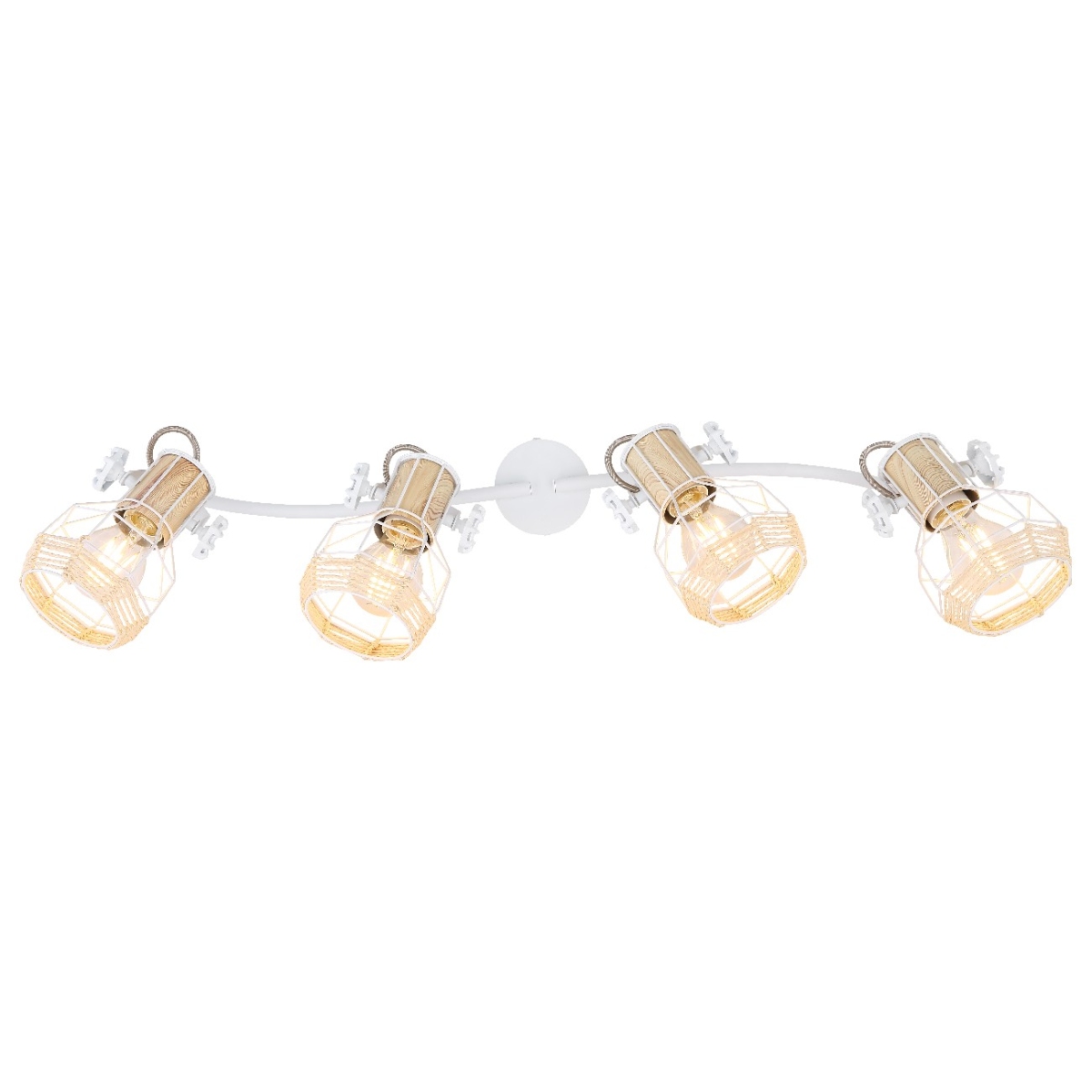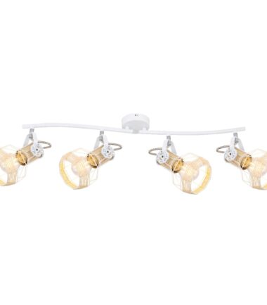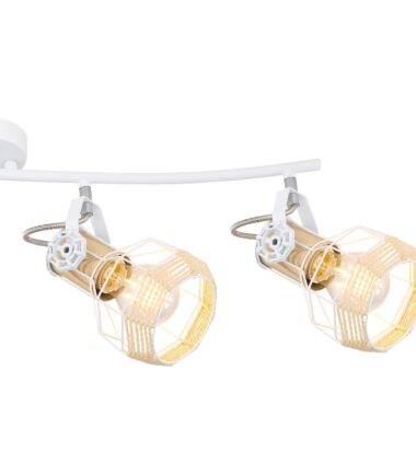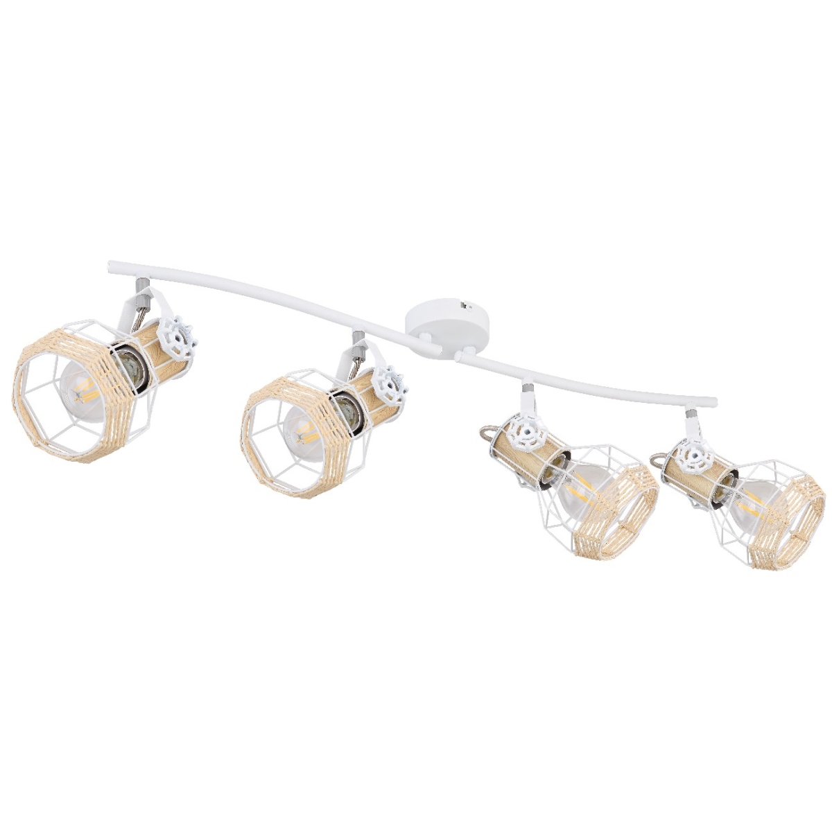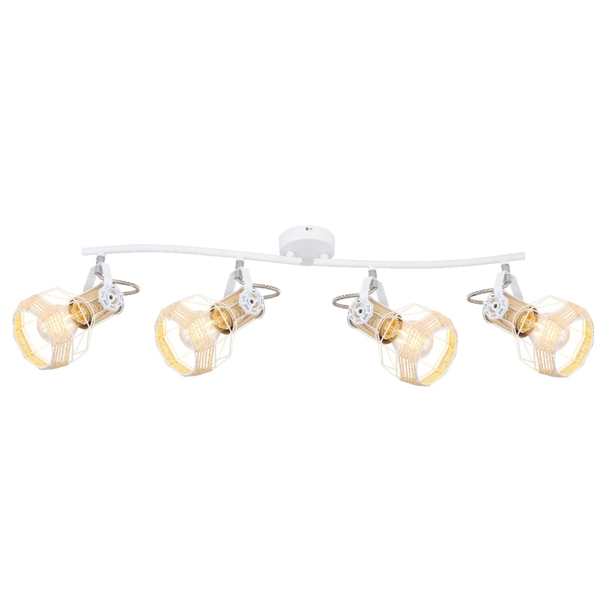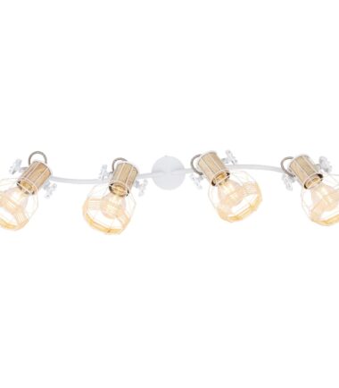 Ovaj reflektor serije BANA kombinuje moderno sa retro izgledom. Beli metal i prirodno drvo u kombinaciji sa prirodno obojenim abažurima čine da ovaj enterijer privlači pažnju u vašem domu. Četiri pokretna reflektora, koja se nalaze na dve grane, ukrašena su vizuelno efikasnim podesivim točkovima na metalnom kućištu. Zbog slobodnog izbora izvora svetlosti (4xE27/max. 40W) možete sami odrediti svetli intenzitet i boju svetla ove unutrašnje lampe. Zbog njihove dugovečnosti i uštede energije preporučujemo LED sijalice.