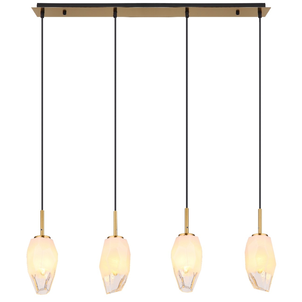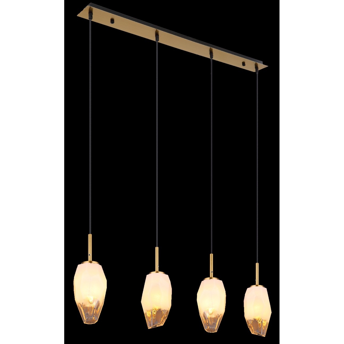 Visilica BARCLEY serije od metala u boji mesinga sa opalnim providnim staklom je elegantan izbor za bilo koju prostoriju. PVC kabl u crnoj boji daje lampi moderan dodir. Lampa ima veličinu 900x110x1200mm, što je čini odličnim izborom za sobe srednje veličine. Lampa zahteva 4x E14 LED 7W 230V (nisu uključene) i obezbeđuje svetlo i efikasno osvetljenje. Opalno i providno staklo proizvodi difuzano i prijatno svetlo. Ova visilica je savršena za svakoga ko traži elegantno i efektno rešenje za osvetljenje.