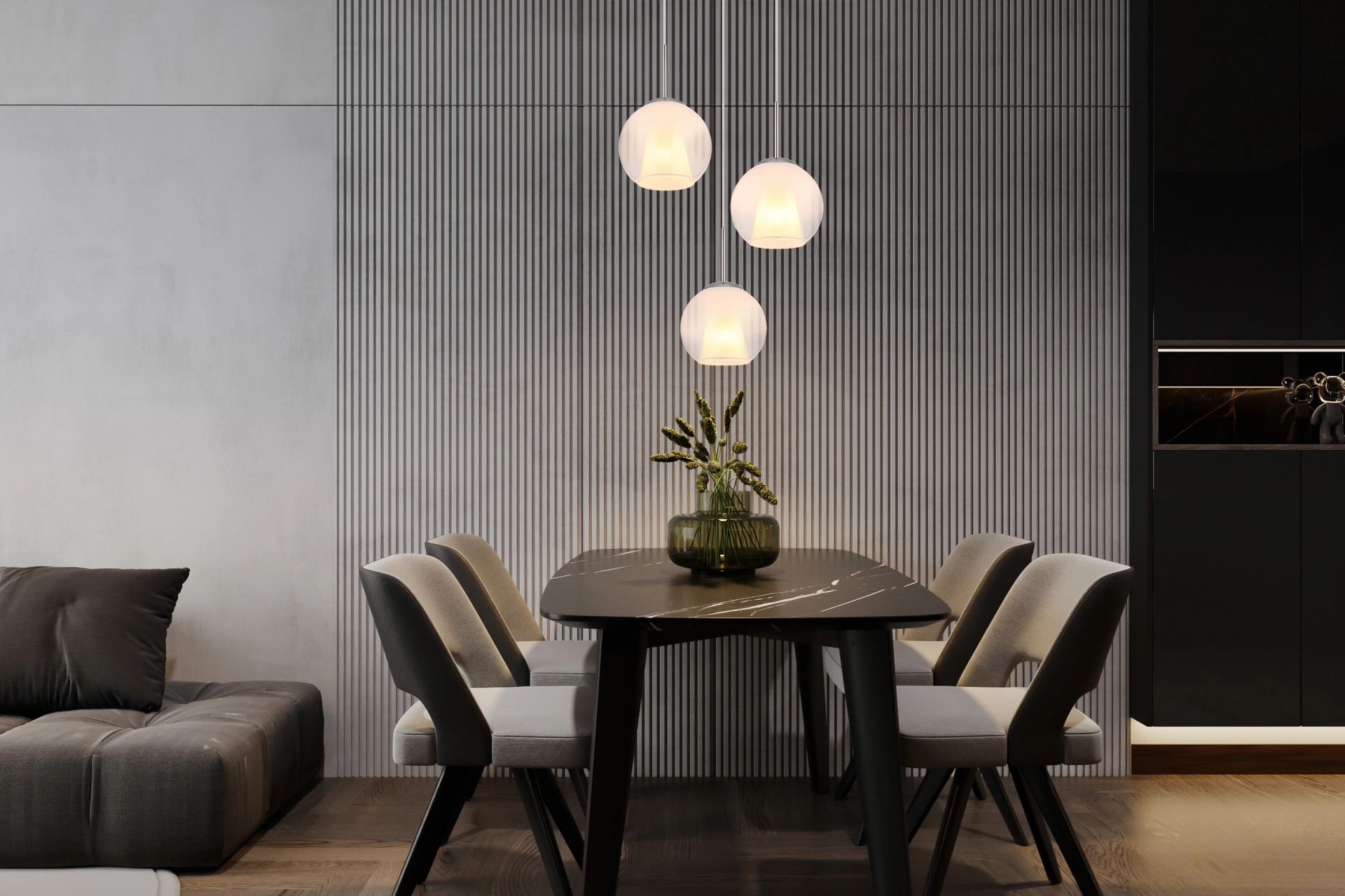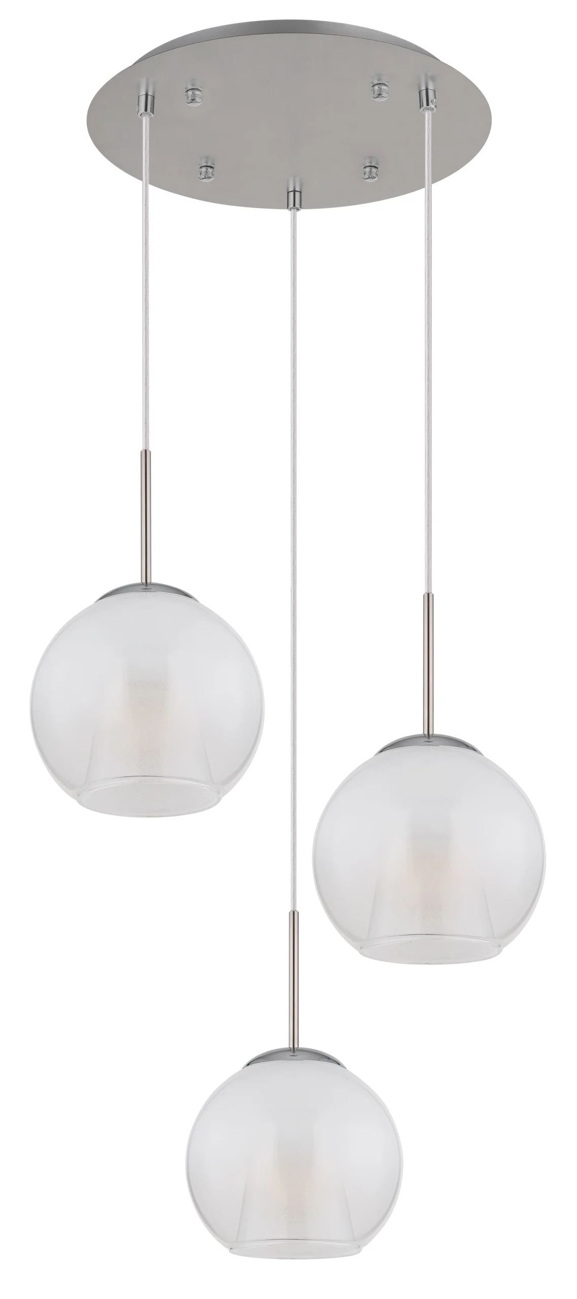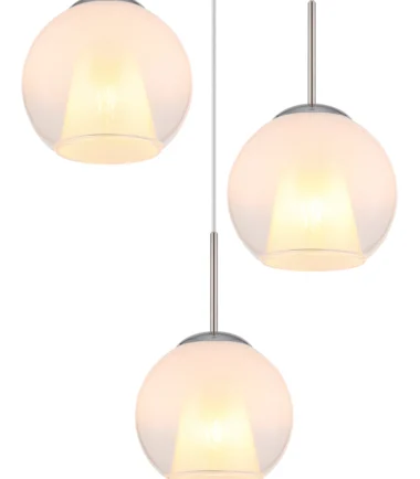 Okrugla viseća lampa BARRY sa tri staklene sfere je elegantan detalj za svaku prostoriju. Telo napravljeno od niklovano-mat metala i hromiranog metala daje lampi moderan dodir. Opalne i providne staklene sfere sa gradijentnim dizajnom pružaju fascinantne refleksije svetlosti. Sa prečnikom od 450 mm, savršeno se uklapa iznad trpezarijskih stolova ili u velike dnevne sobe. Unutrašnji stakleni kristali pojačavaju efekat osvetljenja i stvaraju privlačnu atmosferu. Grlo E27 omogućava fleksibilan izbor svetla, tako da možete odabrati idealno osvetljenje za svaku priliku.