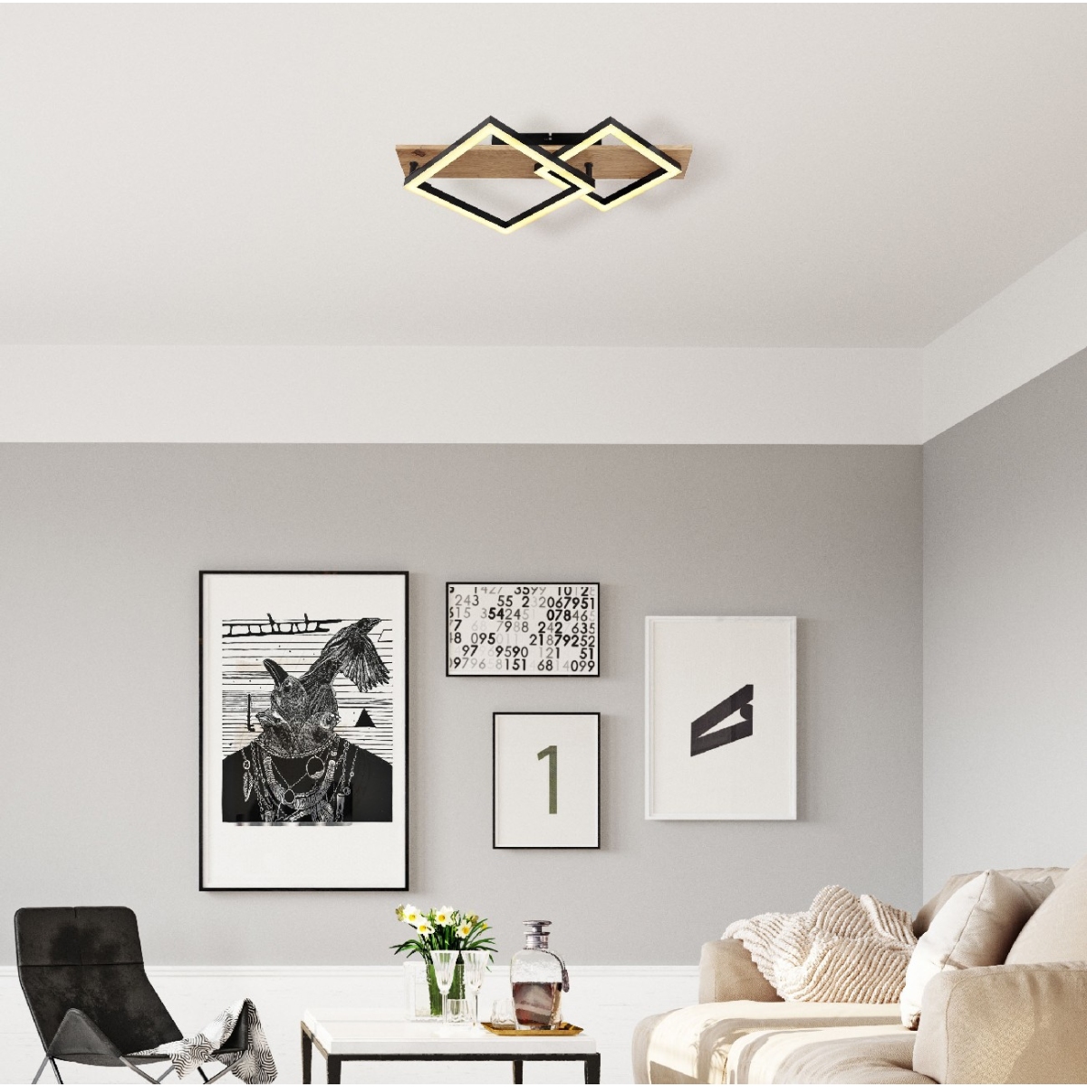 Otkrijte elegantnu lepotu BEATRIX-a! Ova plafonska lampa majstorski kombinuje metal u mat crnoj, tamno obojenom MDF-u nalik drvetu i crnoj mat plastici kako bi se stvorio bezvremeni dizajn. Dimenzijama od 475x310x85mm savršeno se uklapa u bilo koju prostoriju i daje joj posebnu atmosferu. BEATRIX je opremljen moćnim integrisanim LED-om od 18W, koji radi na 230V. Sa svetlosnom efikasnošću od 2100lm, nudi svetlo, ali prijatno toplo osvetljenje od 3000K. Opalna plastika osigurava ravnomernu distribuciju svetlosti i mek ambijent. Dozvolite sebi da budete očarani BEATRIX-om i uživajte u savršenoj interakciji materijala i svetlosti. Transformišite svoj prostor u elegantno mesto za opuštanje.