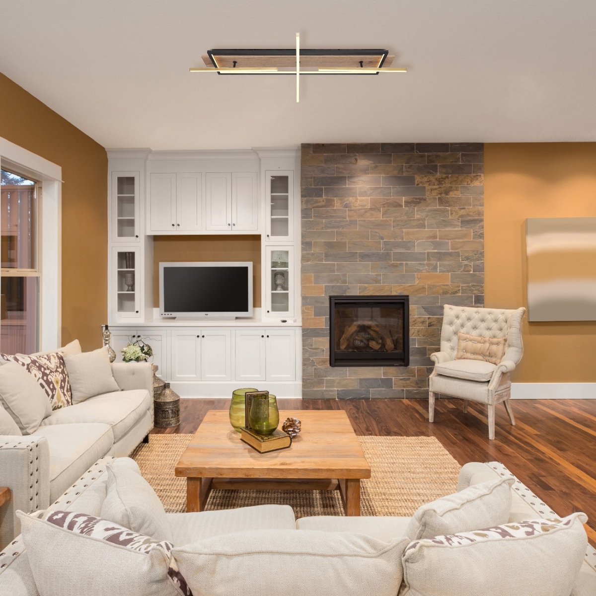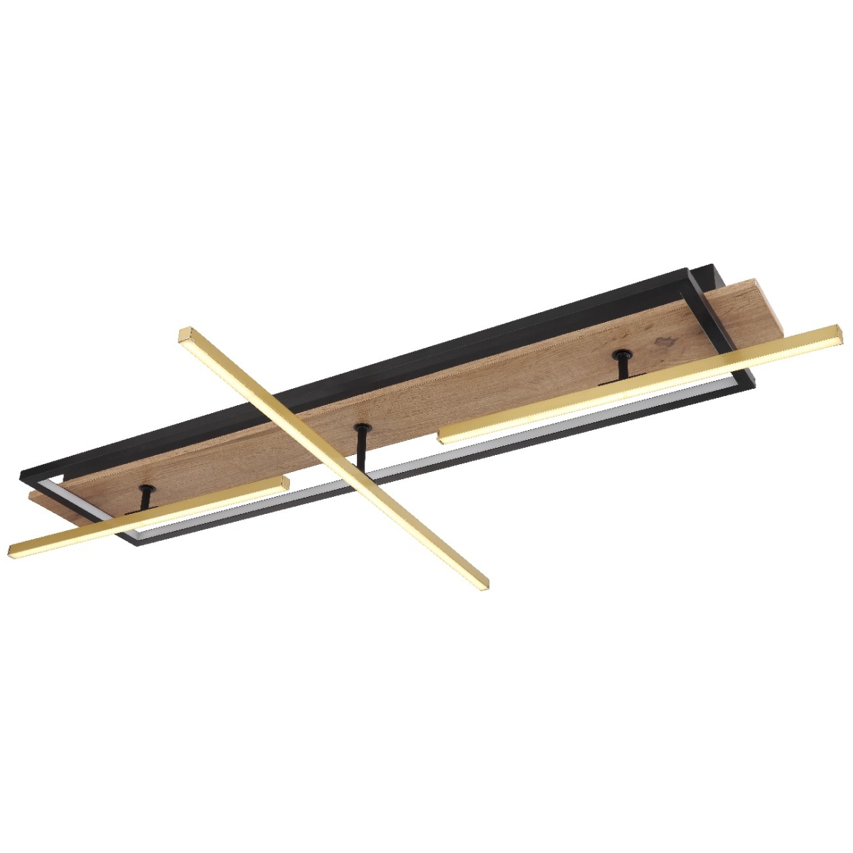 Uronite u fascinantan svet BEATRIX plafonske lampe. Njegov mat crni metalni nosač u kombinaciji sa tamnim MDF detaljima nalik drvetu i aluminijumskim šipkama u boji mesinga pružiće vašoj sobi otmen i moderan dodir. Kombinacija mat crnog aluminijuma i opalne plastike stvara mekano svetlo bez odsjaja koje stvara prijatnu atmosferu. Inovativna funkcija preko zidnog prekidača vam omogućava da podesite osvetljenje u nekoliko faza. BEATRIX ima funkciju memorije i može se rotirati i okrenuti. U ponudi su 3 nivoa: 1. osvetljene su samo šipke, 2. osvetljen je samo unutrašnji okvir, 3. oba zajedno. Sa dimenzijama od 1000x605x115mm, velikom šipkom od 60,5 cm i malim šipkama od 40 cm, BEATRIX se savršeno uklapa u bilo koju prostoriju. Lampa je opremljena snažnim SISTEMOM LED osvetljenja koji troši 48W, proizvodeći izvor od 5400lm i izlaz od 2100lm. Uživajte u toploj i gostoljubivojoj atmosferi sa temperaturom boje od 3000K. BEATRIX je savršen izbor za sofisticiran dizajn osvetljenja i daje vašem domu neuporediv sjaj.