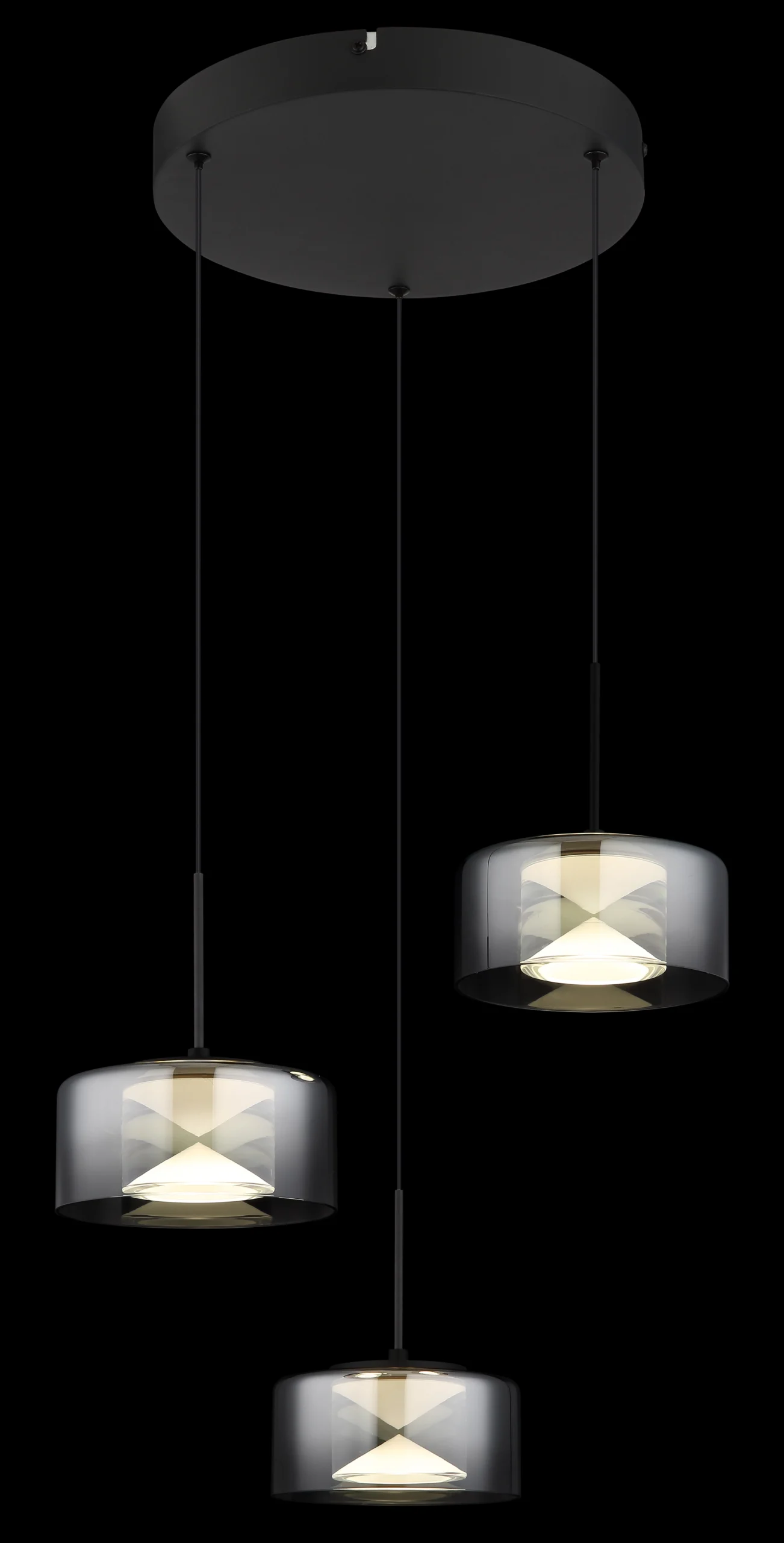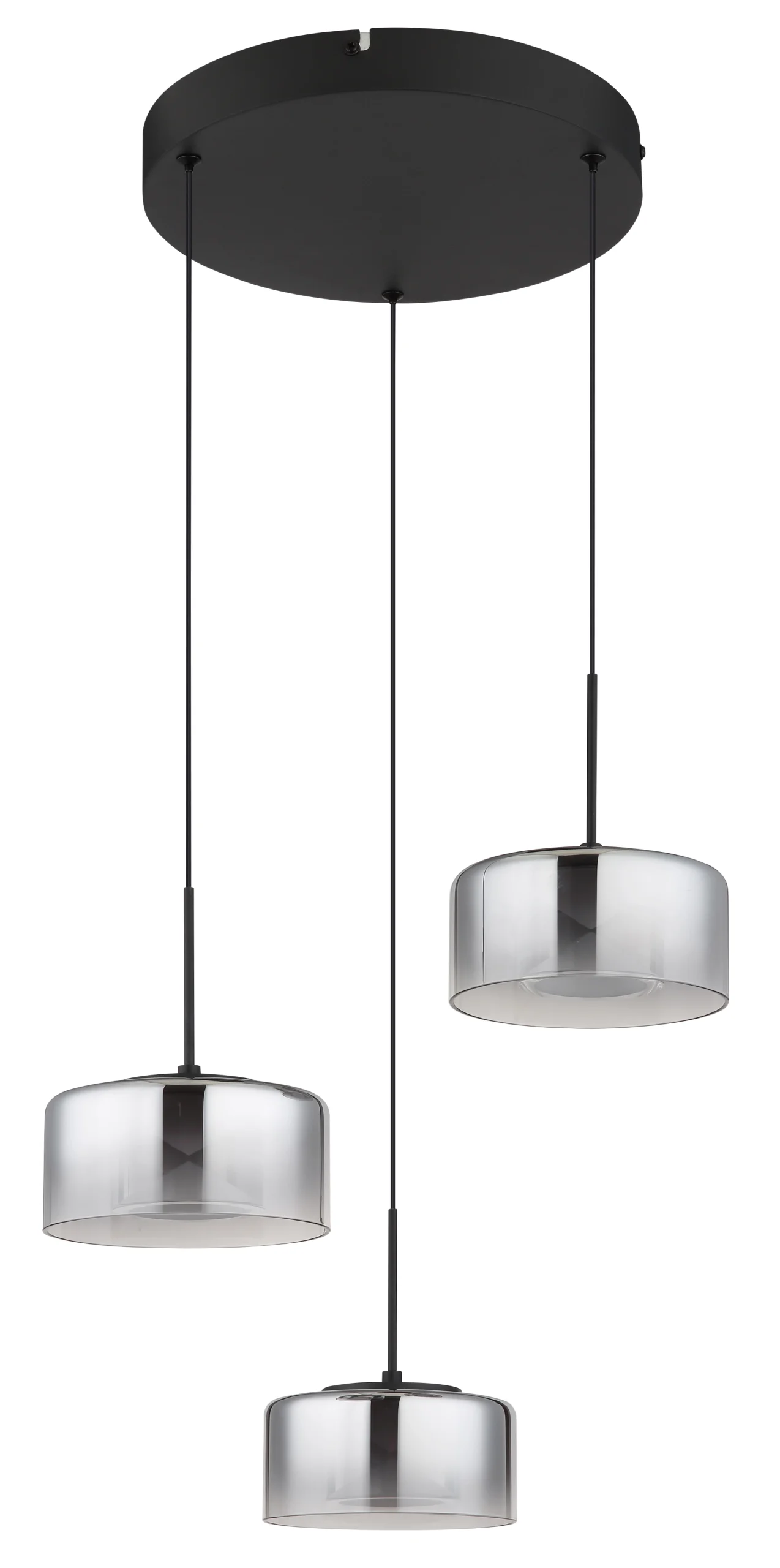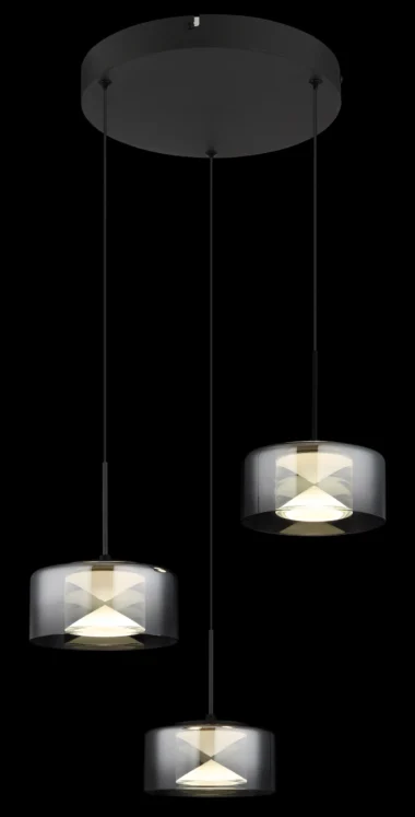 Viseća lampa BELINDA od crnog mat metala je stilski detalj za svaku prostoriju. Njena tri okrugla abažura napravljena od dimljenog, providnog stakla stvaraju prijatnu atmosferu osvetljenja. Sa prečnikom od 400 mm i svetlosnim snagama od 1200 lumena, idealna je za osvetljenje trpezarija ili dnevnih soba. Temperatura boje od 4000 K pruža jasno i neutralno svetlo koje je savršeno za moderne stilove enterijera. Ova lampa kombinuje funkcionalnost sa savremenim dizajnom.