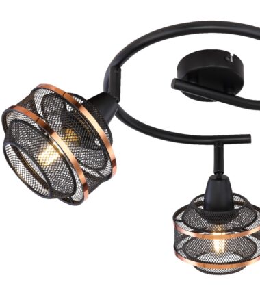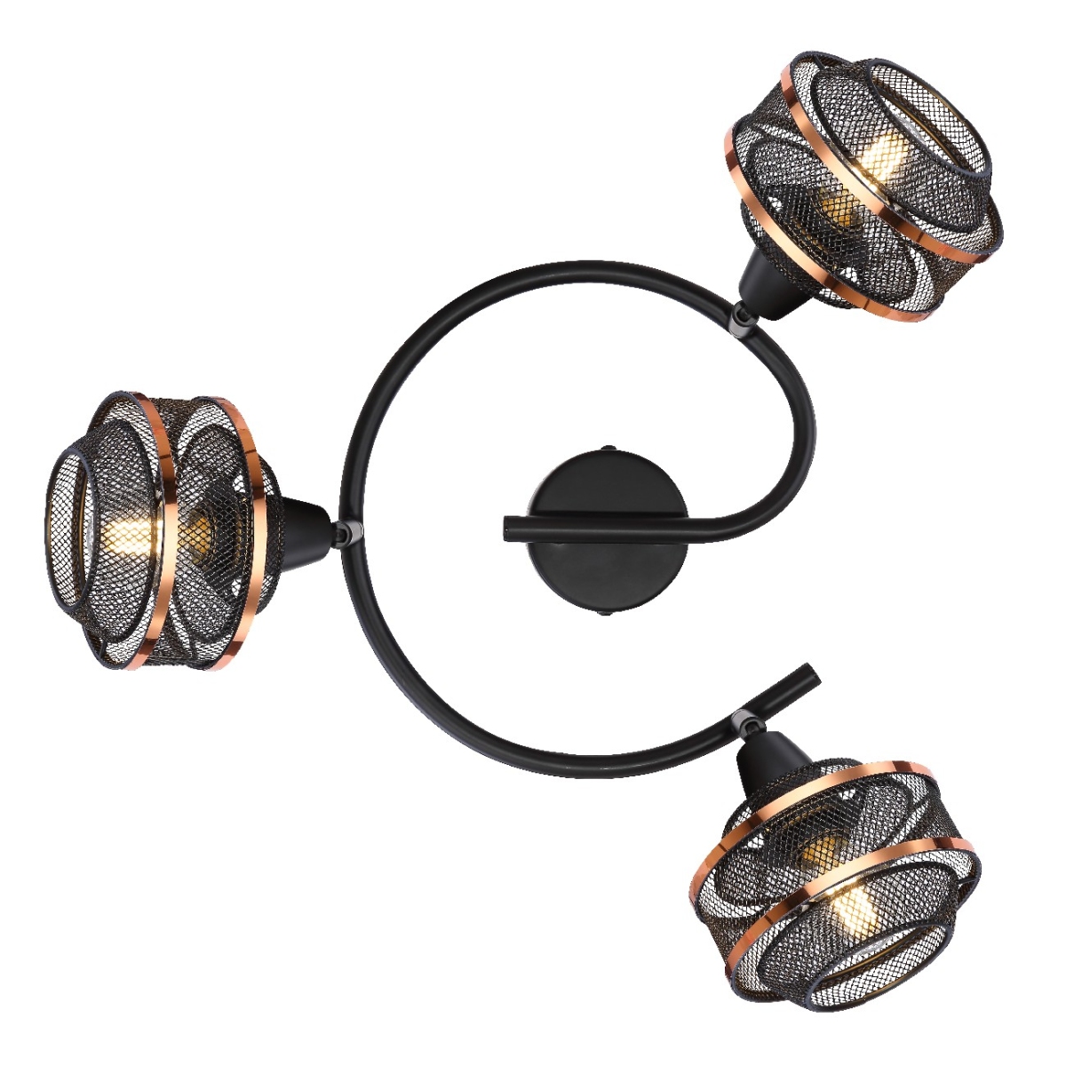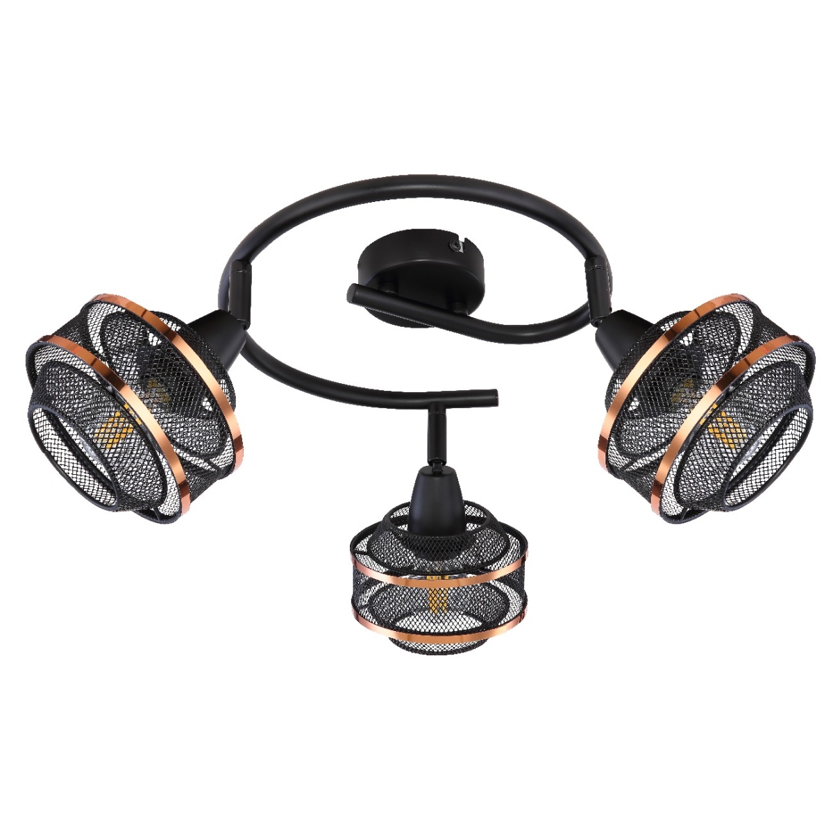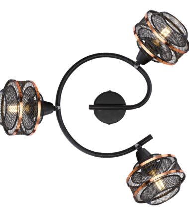 Reflektor serije BELLONA (Ø25cm) impresionira svojim modernim izgledom. Artikl je ukrašen crnim i zlatnim detaljima, abažuri su napravljeni od zakrivljene žičane mreže. 3 ugrađena E14 grla su dizajnirana do maksimalnih 40W i omogućavaju zamenu sijalica.
