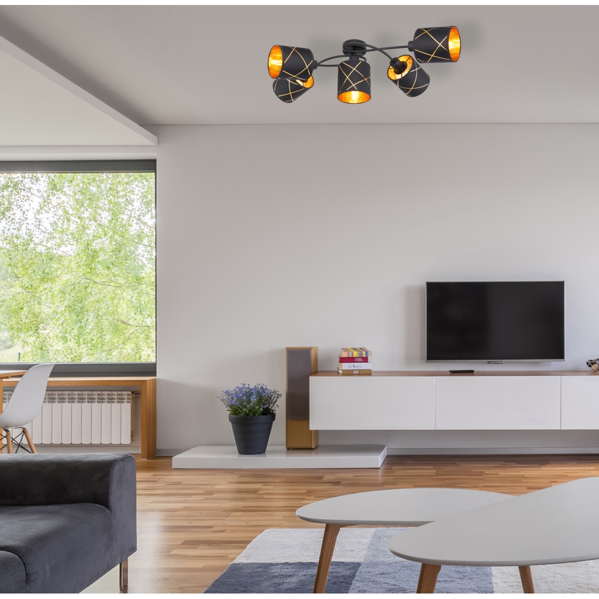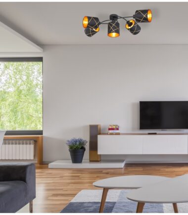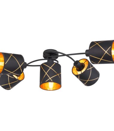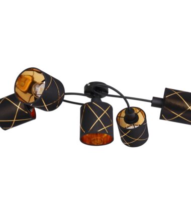 Plafonska lampa od pet grla serije BEMMO ima 5 abažura sa ukrasnim šarama. Svetlost ove prelepe lampe divno se reflektuje kroz akril zlatne boje pričvršćen za unutrašnjost abažura. E27 grlo vam daje slobodan izbor u smislu intenziteta svetlosti i boje prilikom odabira sijalica ( 5xE27, 25 vati). Zbog njihove dugovečnosti i uštede energije preporučujemo LED sijalice. Ova tradicionalna lampa je posebno pogodna za spavaće sobe, dnevne sobe i trpezarije. Ostali modeli ove serije upotpuniće vaš životni prostor.
