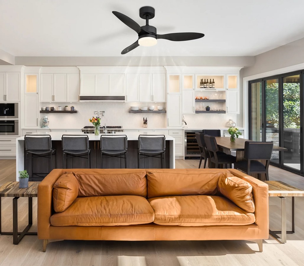 Otkrijte plafonski ventilator BLACKWELL – savršen spoj funkcionalnosti i modernog dizajna. Ovaj elegantni ventilator impresionira sa svoje tri zaobljene lopatice, koje garantuju gladak protok vazduha, a istovremeno tiho rade. Mat crno metalno kućište daje mu elegantan izgled, dok opalno i crno plastično abažuro pruža stilsku raspodelu svetlosti.