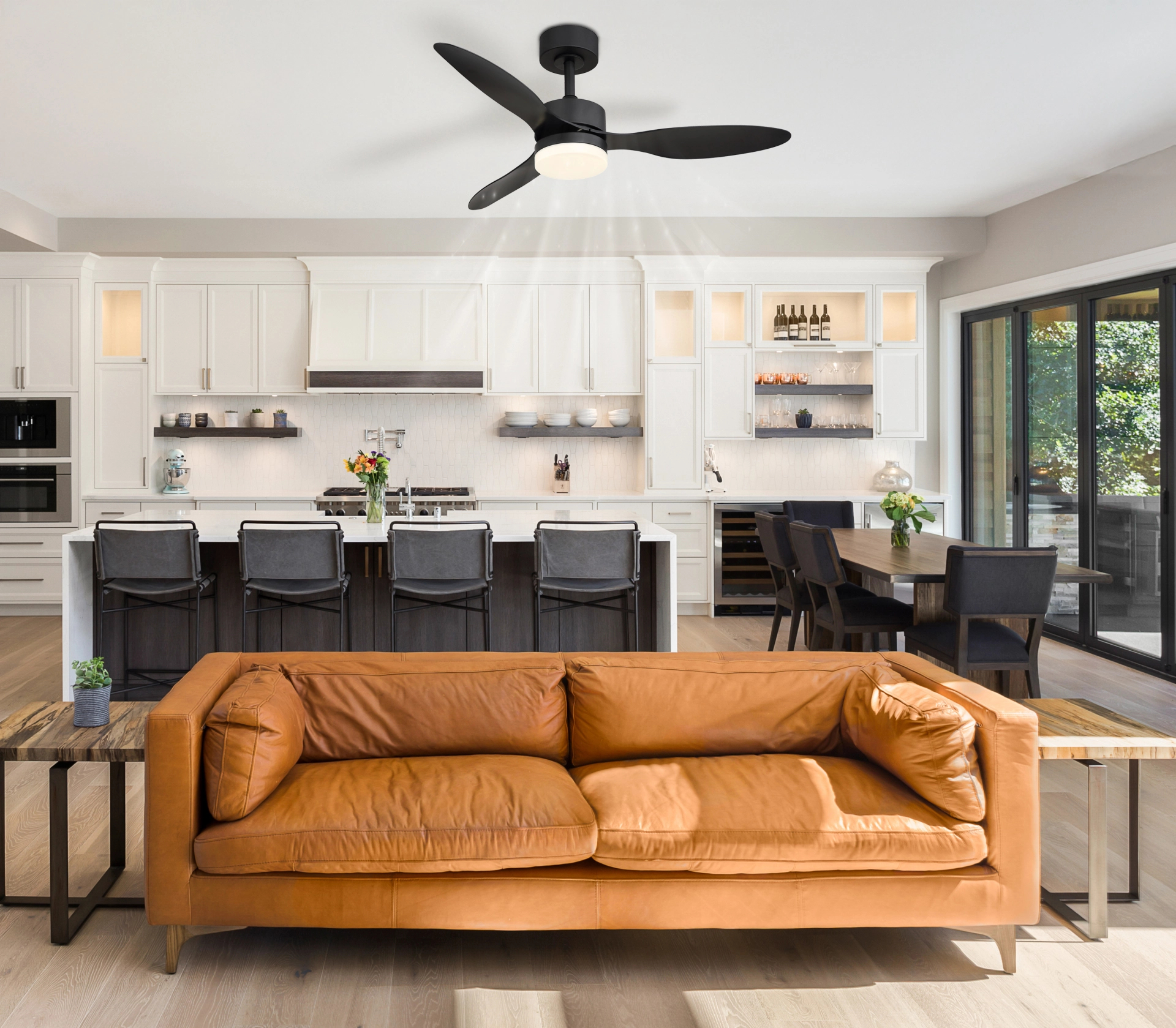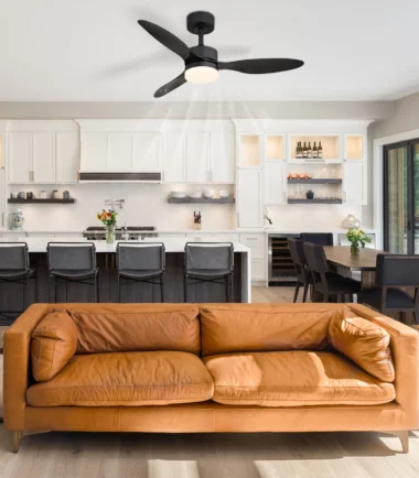 Otkrijte plafonski ventilator BLACKWELL – savršen spoj funkcionalnosti i modernog dizajna. Ovaj elegantni ventilator impresionira sa svoje tri zaobljene lopatice, koje garantuju gladak protok vazduha, a istovremeno tiho rade. Mat crno metalno kućište daje mu elegantan izgled, dok opalno i crno plastično abažuro pruža stilsku raspodelu svetlosti. BLACKWELL je opremljen daljinskim upravljačem koji vam daje potpunu kontrolu nad ventilatorom. Prigušiva LED osvetljenje sa impresivnom snagom od 1600 lumena omogućava fleksibilno podešavanje osvetljenosti. Zahvaljujući CCT tehnologiji, možete podesiti boju svetlosti od toplih 2700 K do hladnih 6500 K po želji. Funkcija memorije pamti vaša željena podešavanja, a ugrađeno noćno svetlo pruža meko osvetljenje noću. Uživajte u udobnosti i stilu sa plafonskim ventilatorom BLACKWELL.