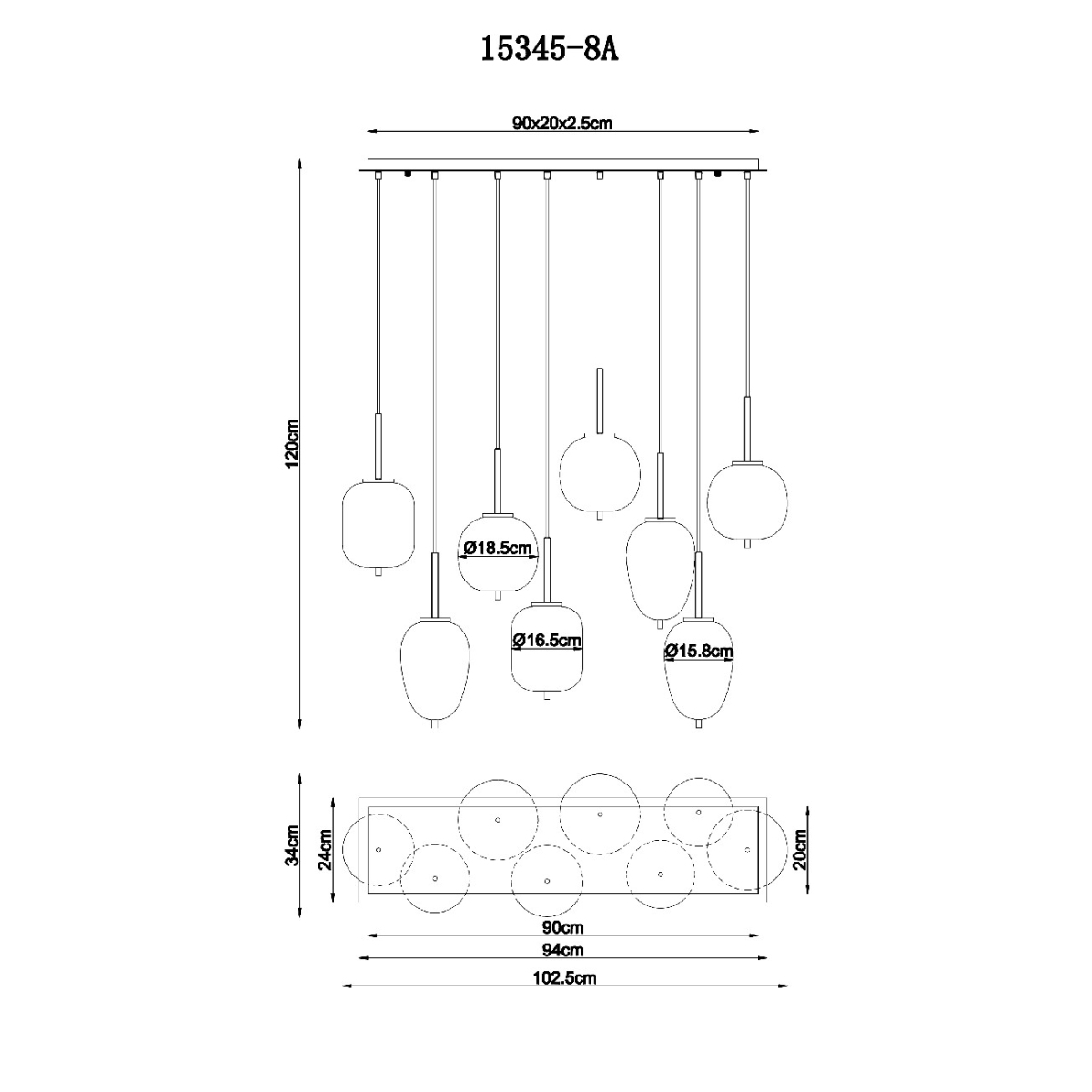 Ova prelepa visilica serije BLACKY inspiriše modernim dizajnom. Osam staklenih kugli u boji dima različitih oblika, svaka sa grlom E27, vise sa plafonske osnove (102x34cm) do 1.2 m od plafona. Grlo E27 vam omogućava da sami odaberete sijalicu, samim tim i boju svetla i jačinu do maksimalno 40W.