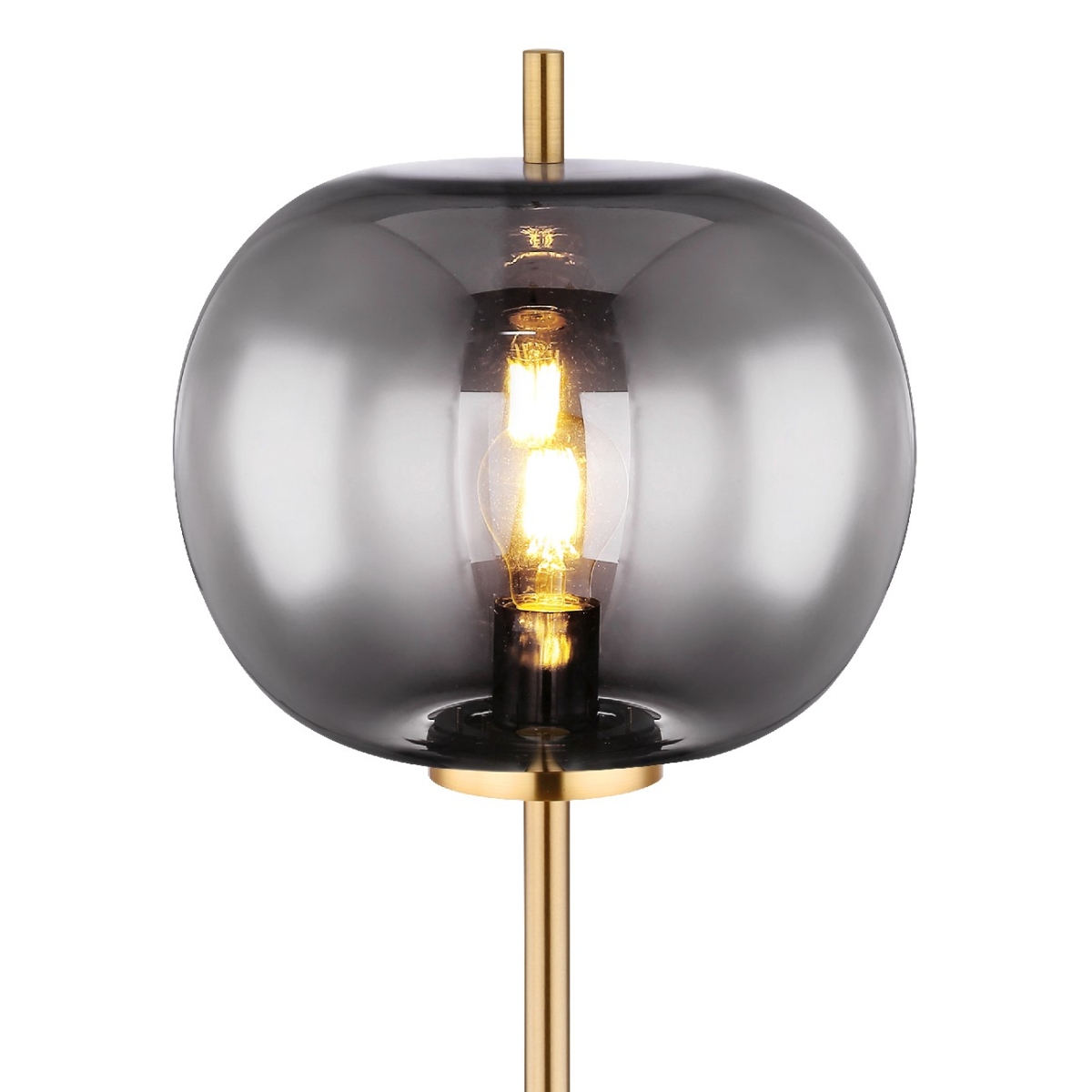 Ova podna lampa od 160 cm je divan dodatak vašem enterijeru. Sastoji se od mesingane metalne baze (ø 25 cm), koja lampi daje savršenu stabilnost, a poseduje i mesinganu metalnu šipku. Na vrhu se nalazi okrugla, zadimljena staklena kugla (ø 30 cm), koja može biti opremljena E27 sijalicom po vašem izboru. To vam daje mogućnost da u skladu sa svojim idejama odredite boju svetla i jačinu. Pored toga, kabl dužine 180 cm opremljen je prekidačem sa kojim lako možete uključiti i isključiti podnu lampu. Pomoću drugih modela iste serije možete da kreirate elegantan ambijent u svoja četiri zida i upotpunite celokupnu sliku.