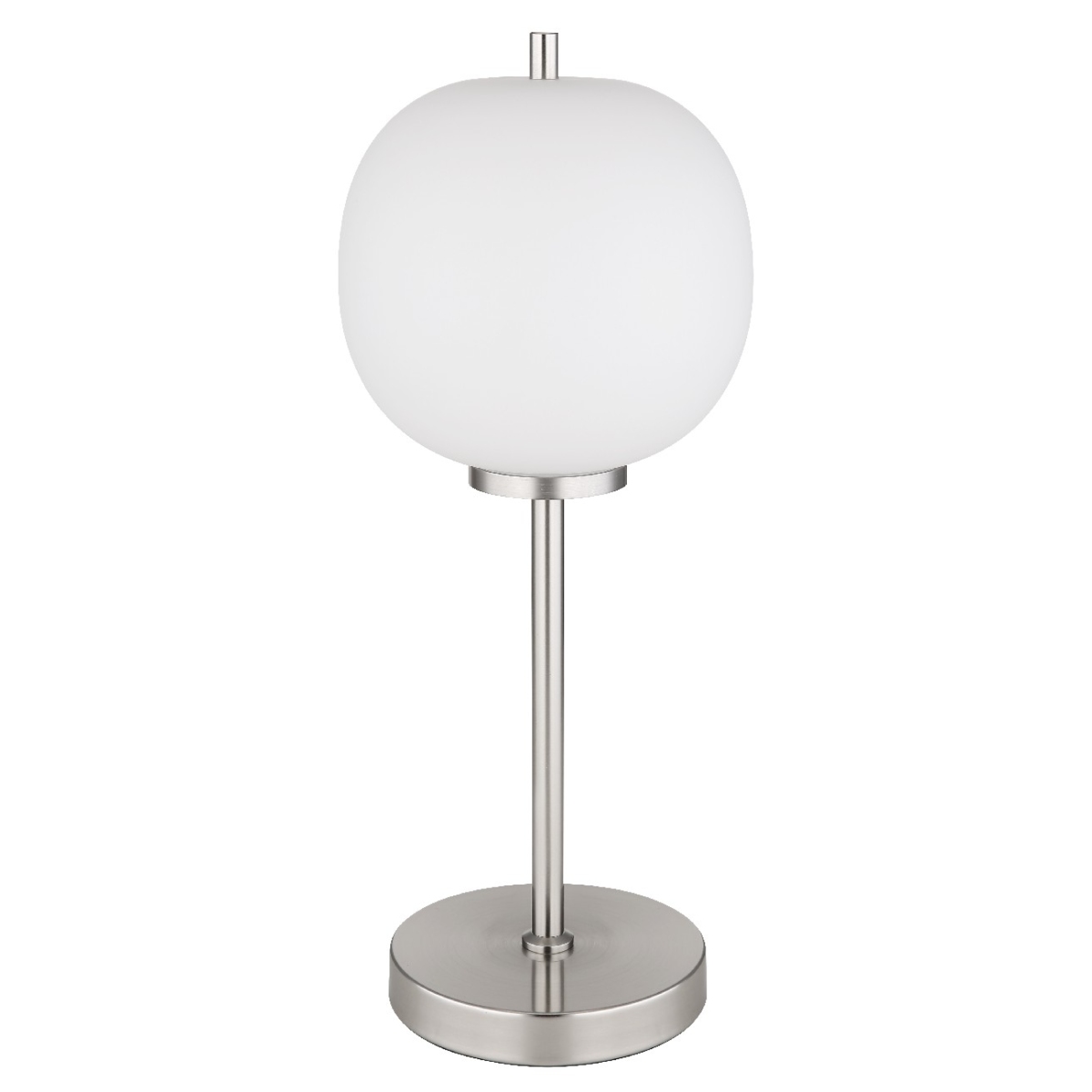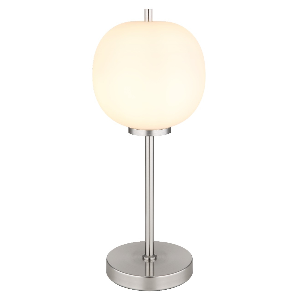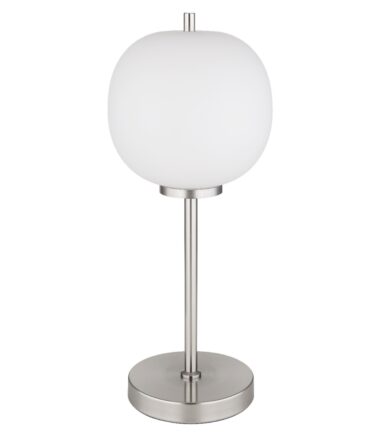 Ova sjajna stona lampa BLACKY I serije inspiriše jednostavnim dizajnom. Metalna šipka visoka 45 cm prodire iz okrugle baze nikla (Ø 15 cm) i završava se na grlu E14, koje je prekriveno opalnim abažurom (Ø 18,5 cm). Grlo E14 vam omogućava da sami odredite boju svetla i jačinu do maksimalne snage od 40 vati. Zbog dugovečnosti i uštede energije preporučujemo LED sijalice.