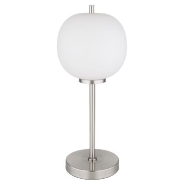 Ova odlična stona lampa iz BLACKY I-serije inspiriše jednostavnim dizajnom. Metalna šipka visoka 45 cm viri iz okruglog postolja boje nikla (Ø 15 cm) i završava se grlom E14, koje je prekriveno lepo oblikovanim opalnim abažurom (Ø 18,5 cm). Grlo E14 vam omogućava da sami određujete boju svetlosti i osvetljenost do maksimalne snage od 40 vati. Zbog dugotrajnosti i uštede energije, preporučujemo LED sijalice.