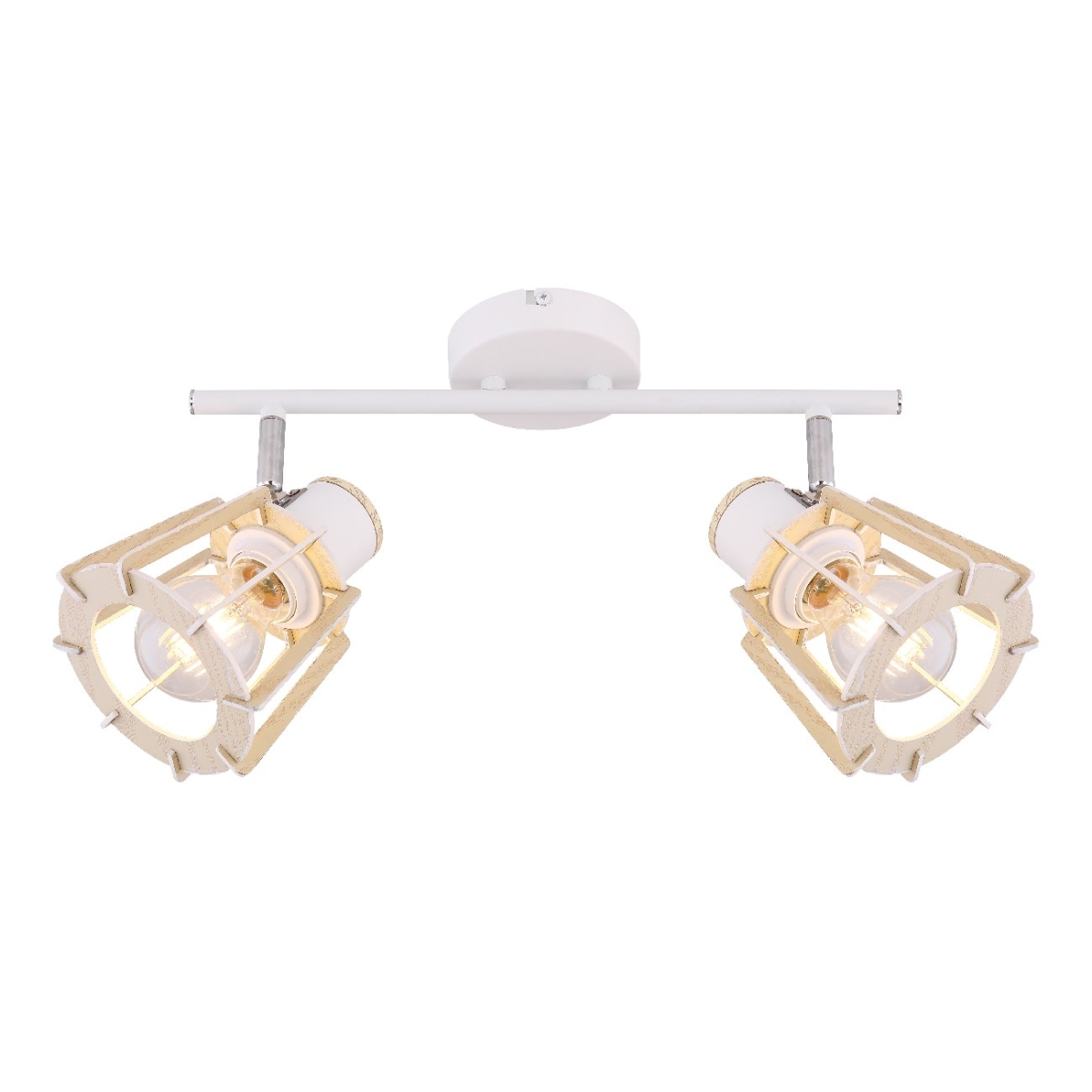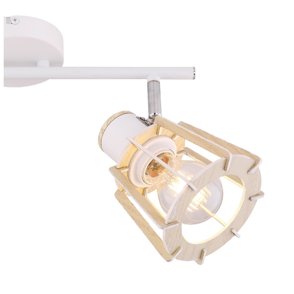 Ova zanimljiva serija BLAHA kombinuje različite materijale – beli metal sa prirodnim drvetom. Dva reflektora koja se nalaze na pravoj šini ubeđuju dizajnom drvenih abažura. Kroz E27 grlo ovog reflektora, intenzitet svetlosti ili boju možete sami odrediti. Zbog njihove dugovečnosti i uštede energije preporučujemo LED sijalice. Ova lampa sa reflektorima je pogodna za spavaću sobu, hodnik, dnevnu sobu i trpezariju.