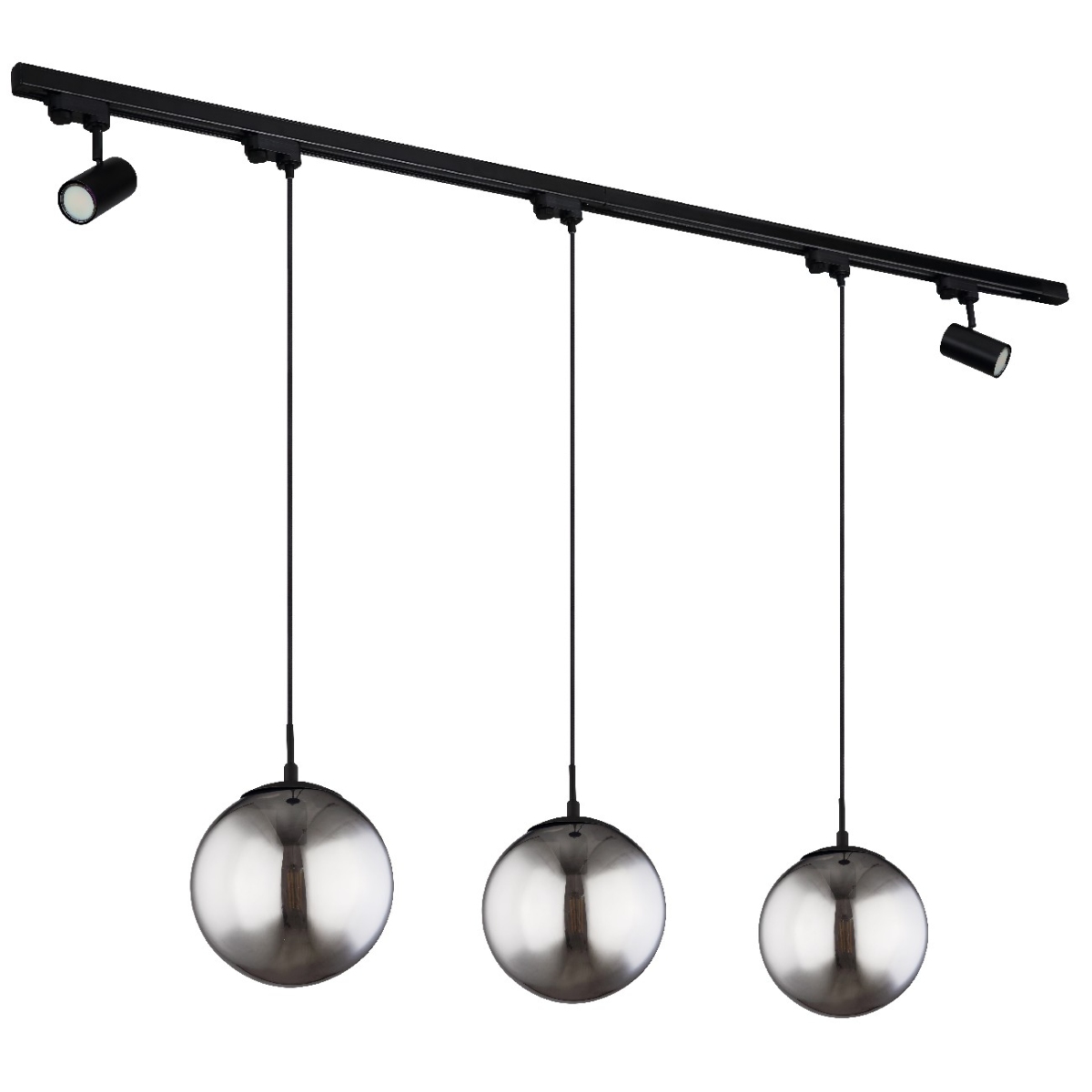 Oličenje ove crne plafonske lampe je čist glamur. Lampa ima tri stakla u boji dima (Ø25cm). Pored toga, na oba kraja metalne šipke duge skoro 2m nalazi se rotirajuća sijalica GU10. Ova unutrašnja lampa prodire oko 120cm u prostoriju. Grlo E27 vam daje mogućnost odabira boje svetla i jačine (excl. 3xE27, 40W). Zbog njihove dugovečnosti i uštede energije preporučujemo LED sijalice. Sa ostalim modelima iz ove serije možete upotpuniti vaš prostor.