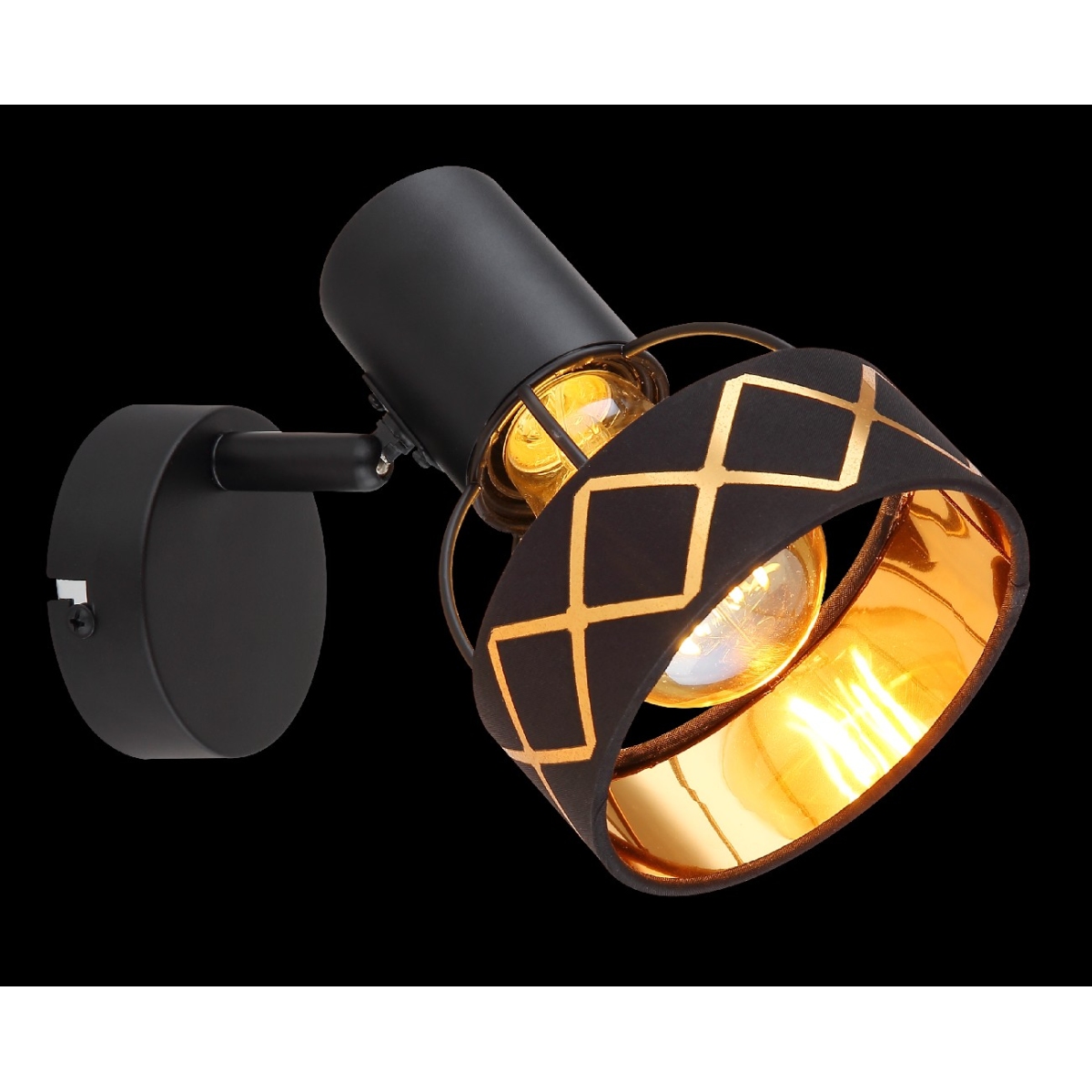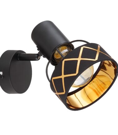 Ovaj reflektor iz serije BLANCA (11×16 cm) je divan dodatak vašem enterijeru. Reflektor napravljen od crnog metala ima crnu tekstilni abažur, koji je tamno zlatnan iznutra i ima linearnu šaru. E27 grlo možete opremiti odgovarajućim svetlosnim izvorom po vašem izboru, što vam omogućava da pojedinačno odredite boju svetla i jačinu. Pomoću ostalih artikala iste serije možete da kreirate elegantan ambijent u svoja četiri zida.