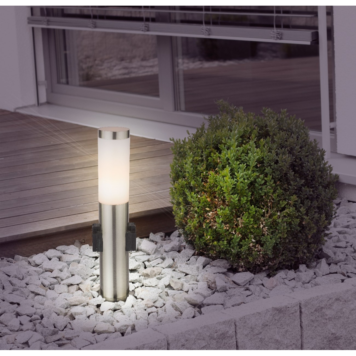 Ova elegantna spoljašnja lampa iz serije BOSTON, ističe se svojim modernim dizajnom napravljenim od nerđajućeg čelika. Okrugla 45cm velika spoljna lampa, ima 2 grla i opremljena je zaštitnom klasom IP44, što je čini idealnom za korišćenje na otvorenom. Uračunata sijalica obezbeđuje 3000 Kelvina topla bela svetlost sa efektom od 500 lumena, gde svetiljka emituje prijatno svetlo.