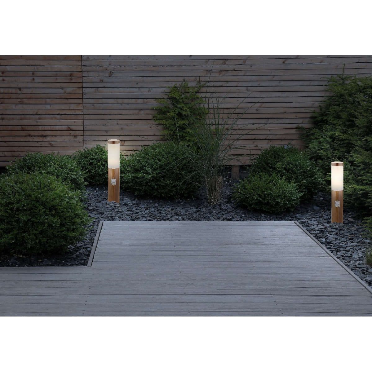 Ova lampa na otvorenom iz serije BOSTON (ø 12,7 cm) je divan dodatak vašoj terasi, vrtu ili balkonu. Velika spoljašnja lampa veličine 45 cm sastoji se od cilindra od nerđajućeg čelika nalik drvetu, koji se može udobno fiksirati na ravnim površinama i obezbeđen je opalnom plastikom. Ona pokriva grlo E27, koje možete opremiti odgovarajućom sijalicom po vašem izboru, pri čemu ste u mogućnosti da odredite boju svetla i jačinu pojedinačno. Pored toga, svetiljka je opremljen uključenim detektorom pokreta. Sa drugim modelima iste serije možete upotpuniti celokupnu sliku u svom otvorenom prostoru i obezbediti elegantan ambijent.