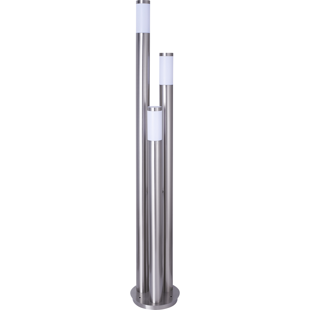 Ovu lampu iz serije BOSTON karakteriše njen elegantan dizajn i sjajna izrada. Oblikovana spoljašnja lampa idealno je pogodna za upotrebu na otvorenom zbog svog IP44 stepena zaštite. Ovaj model je napravljen od nerđajućeg čelika i opalne plastike i ukupne je veličine od 1,7 metara. Ova lampa na otvorenom ima tri E27 grla i zato vam omogućava da koristite sijalicu po vašem izboru (max.60W). Zbog njihove uštede energije i dugovečnosti preporučujemo LED sijalice. Uz ostale osnovne i zidne lampe iste serije proizvoda možete upotpuniti sliku.