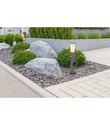 Ovu elegantnu spoljnu lampu BOSTON serije karakteriše njen elegantan dizajn i odličana izrada. Oblikovana lampa napravljena od nerđajućeg čelika u boji antracita, idealna je za upotrebu na otvorenom zbog svoje zaštitne klase IP44. Ovaj model ima ukupnu visinu od 60 cm i opremljen je E27 (max. 60W) grlom. Zbog uštede energije i dugovečnosti preporučujemo vam korišćenje LED sijalica. Osim toga, lampa ima 2 grla u osnovi nerđajućeg čelika i senzor sa 3 opcije podešavanja, što ovu lampu čini nečim posebnim. Da bi upotpunili celokupnu sliku u bašti, preporučujemo da koristite i druge modele iz ove serije.