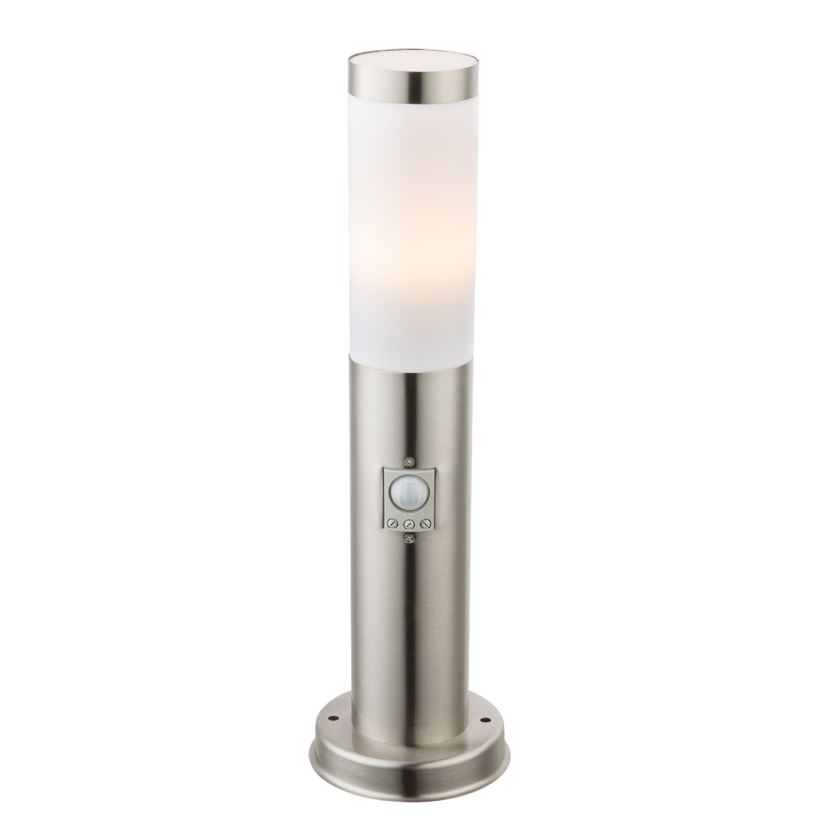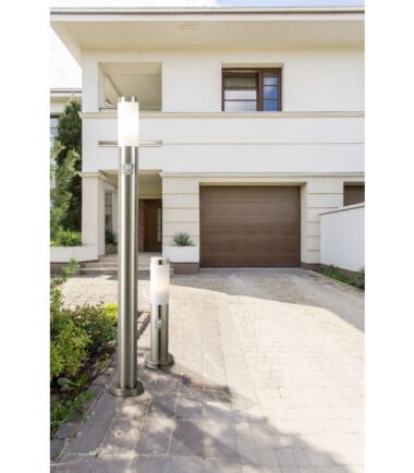 Ovu elegantnu lampu serije u BOSTON karakteriše njen elegantan dizajn i sjajna izrada. Oblikovana spoljašnja lampa idealno je pogodna za upotrebu na otvorenom zbog svog IP44 stepena zaštite. Ovaj model je napravljen od nerđajućeg čelika i opalne plastike i ukupne je veličine 45 cm. Lampa je opremljena E27 grlom i odgovarajućom LED sijalicom. Ona obezbeđuje 500 lumena jako svetlo sa prijatnim toplo belim svetlom od 3000K. Dodatnu prednost ima integrisani detektor pokreta (90°) sa dometom do 9 metara. Uz ostale osnovne lampe i zidne lampe iste serije proizvoda možete upotpuniti sliku.