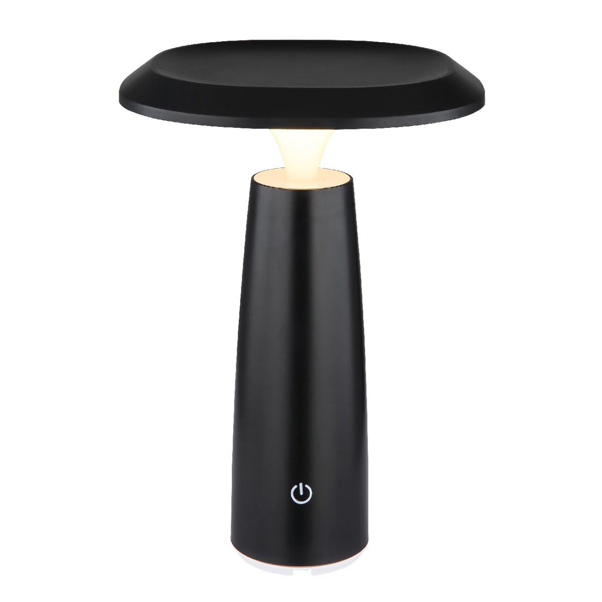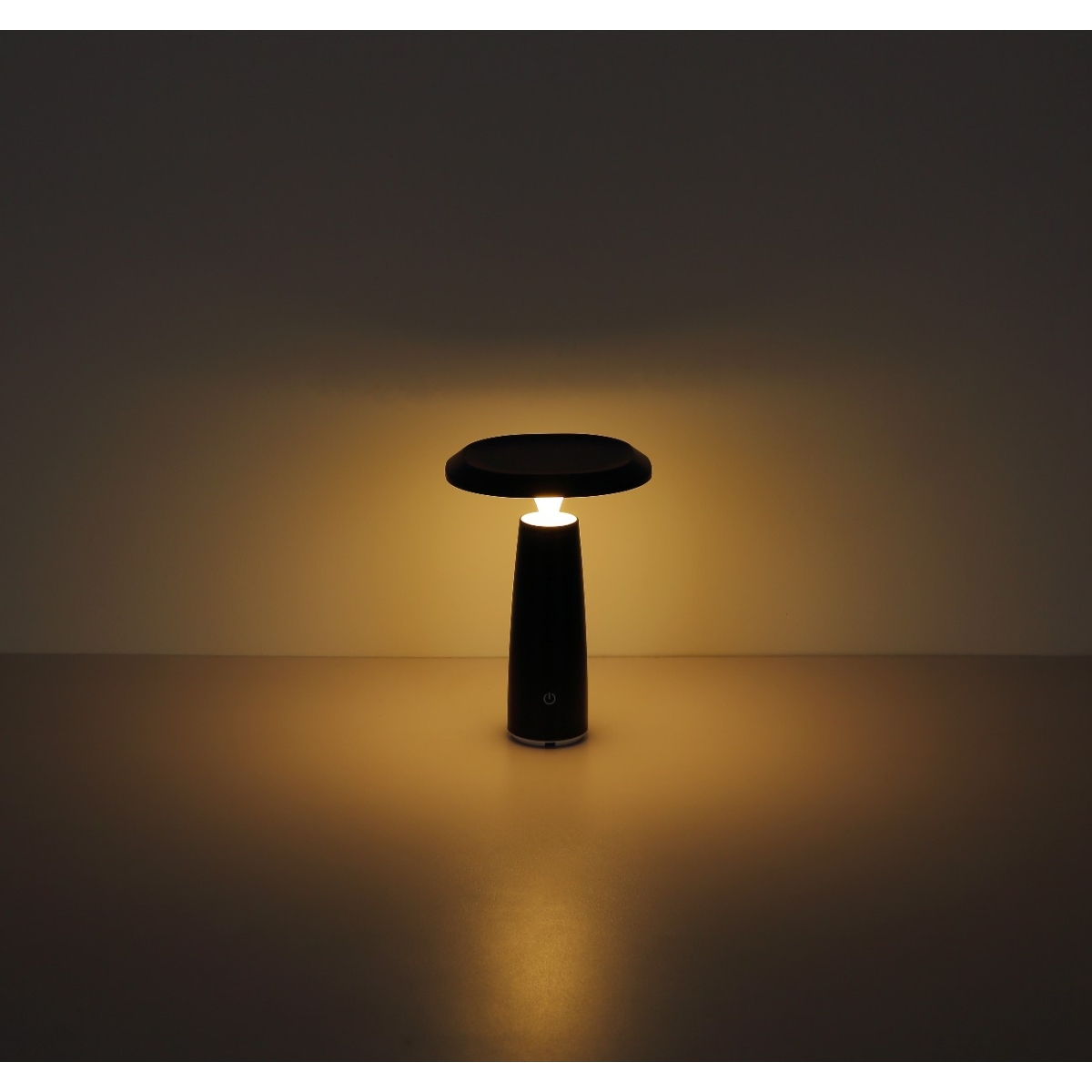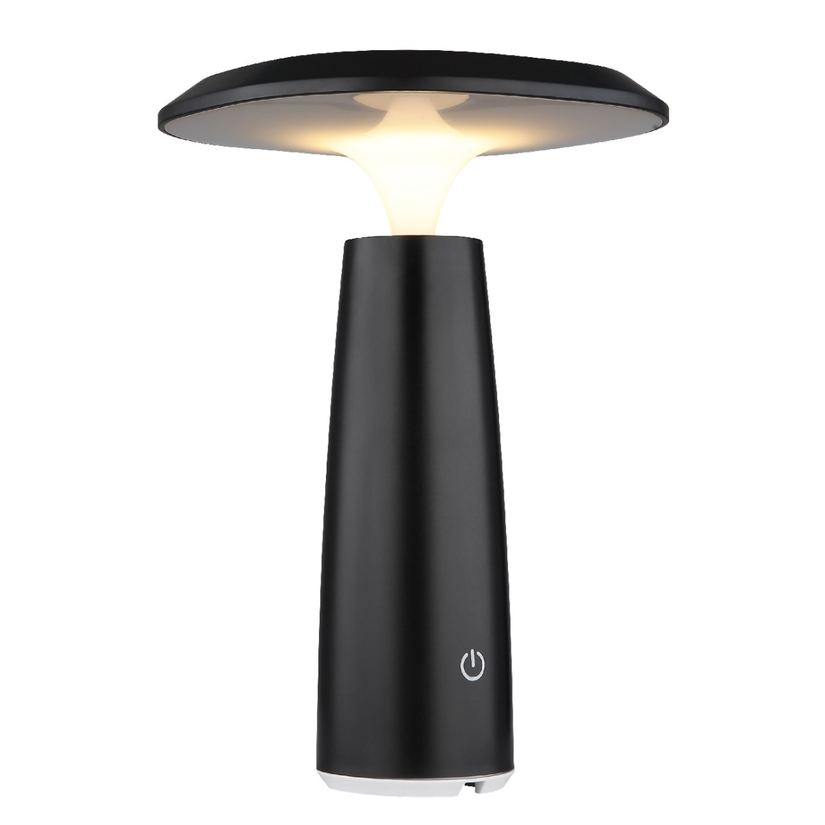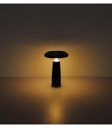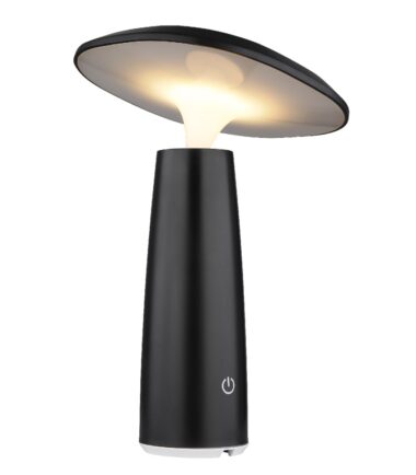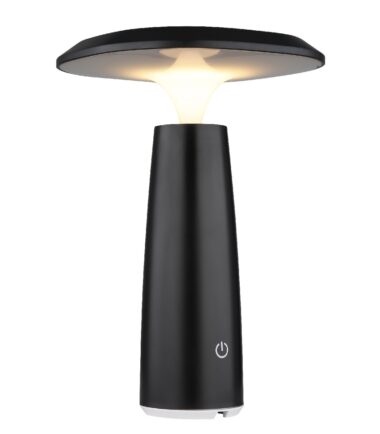 Okrugla stona lampa serije BOWIE u obliku pečurke je svestran i modran izvor svetlosti za vaš dom. Telo lampe napravljeno je od mat crne plastike i opal plastike, što obezbeđuje prijatnu distribuciju svetlosti. Opremljen LED izvorom svetlosti koji se može prigušiti i beskonačno promenljivim dimerom na dodir, ova svetiljka omogućava individualno podešavanje inteziteta svetlosti. Sa prečnikom od 140 mm i snagom od 1.2W, stona lampa daje izlaz od 100 lumena pri toploj temperaturi boje od 3000K. Dobija se UBS kabl za punjenje, sa vremenom punjenja oko 4 sata i vremenom sagorevanja oko 6 sati. Stona lampa ima IP44 stepen zaštite i stoga je pogodna i za upotrebu u kupatilu.