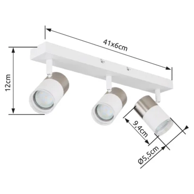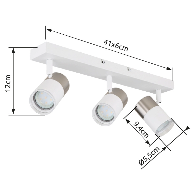 Pravougaoni zidni znak sa cilindričnim reflektorima i dekorativnim prstenom je savršeno rešenje za moderno i stilsko osvetljenje u vašem domu. Reflektor je napravljen od mat belog metala i ima tri GU10 reflektora koji nude ukupnu snagu od 25W – idealno za svetlo i efikasno osvetljenje. Abažuri su napravljeni od kombinacije mat nikl-aluminijuma, belog aluminijuma i providne plastike, što reflektoru daje elegantan i moderan izgled. Sa dužinom od 410 mm i širinom od 60 mm, ovaj reflektor se savršeno uklapa na bilo koji zid i pruža veliko osvetljenje u svakoj prostoriji. Postavite stilske akcente pomoću ovog visokokvalitetnog i modernog reflektora i stvorite prijatnu atmosferu u svom domu.