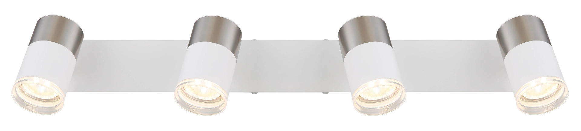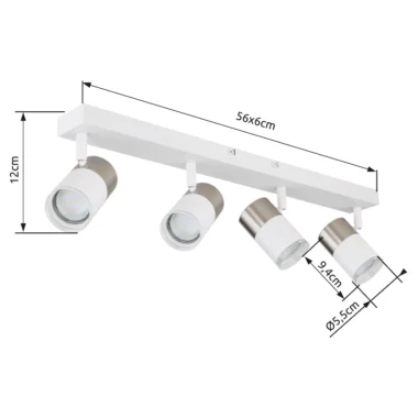 Pravougaoni zidni znak sa cilindričnim reflektorima i dekorativnim prstenom je moderno i stilsko rešenje za osvetljenje vašeg doma. Pravougaoni reflektor je napravljen od mat belog metala i uključuje četiri GU10 reflektora ukupne snage 25W. Abažuri su napravljeni od visokokvalitetnog aluminijuma u mat niklu i beloj boji, u kombinaciji sa providnom plastikom, što reflektoru daje elegantan izgled. Sa dimenzijama dužine 560 mm i širine 60 mm, ovaj reflektor se savršeno uklapa na svaki zid i pruža efikasno osvetljenje u svakoj prostoriji. Unesite stil i funkcionalnost u svoj dom pomoću ovog modernog, belog metalnog reflektora i uživajte u prijatnoj atmosferi u privlačnom dizajnu.