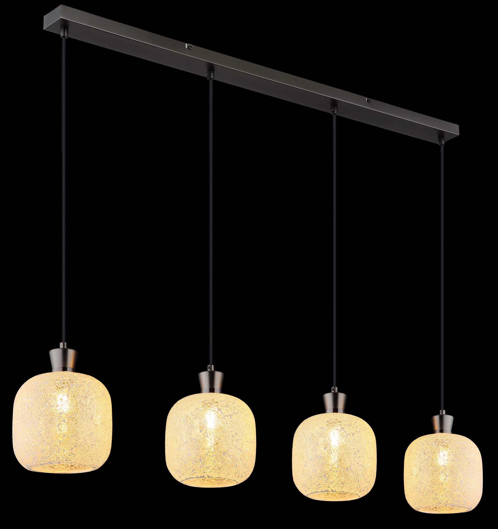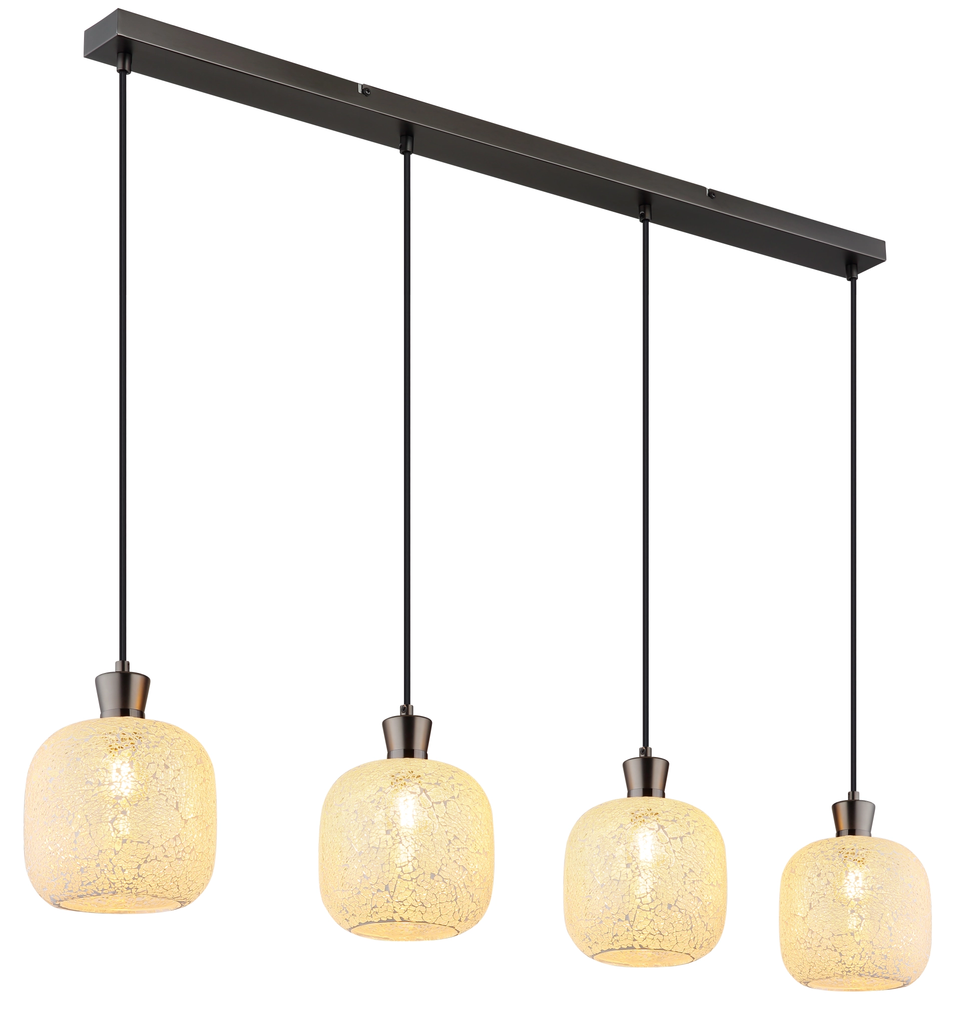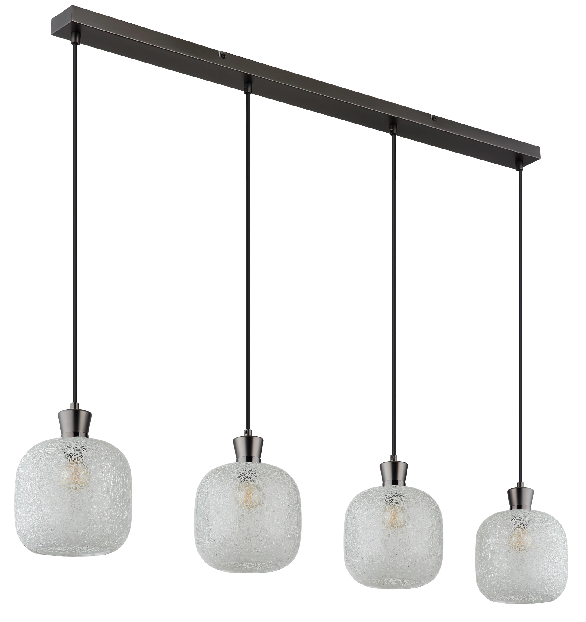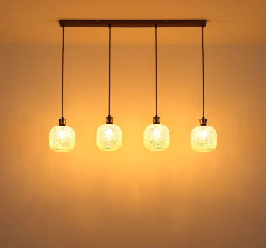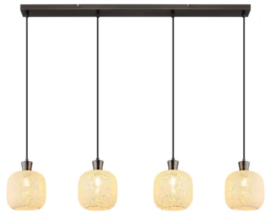 METALNA CRNA-HROM MAT viseća lampa impresionira svojim elegantnim, modernim dizajnom i postavlja stilske akcente u vašoj sobi. Izdužena šina od mat crne i hromirane boje stvara minimalistički izgled, dok četiri okrugla stakla u mozaičnom dizajnu od providnog stakla stvaraju fascinantne igre svetlosti. Ova viseća lampa je opremljena sa 4 grla E14 (bez sijalica) tako da možete individualno podesiti svetlo po svom ukusu. Savršena je za trpezarijski sto, kuhinjska ostrva ili kao elegantno osvetljenje u dnevnoj sobi. Metalno kućište i mozaična stakla stvaraju skladan, ali upečatljiv kontrast koji vašoj sobi daje toplu, privlačnu atmosferu. Viseća lampa kombinuje funkcionalnost sa estetskim dizajnom i garantovano će privući pažnju u vašem domu.
