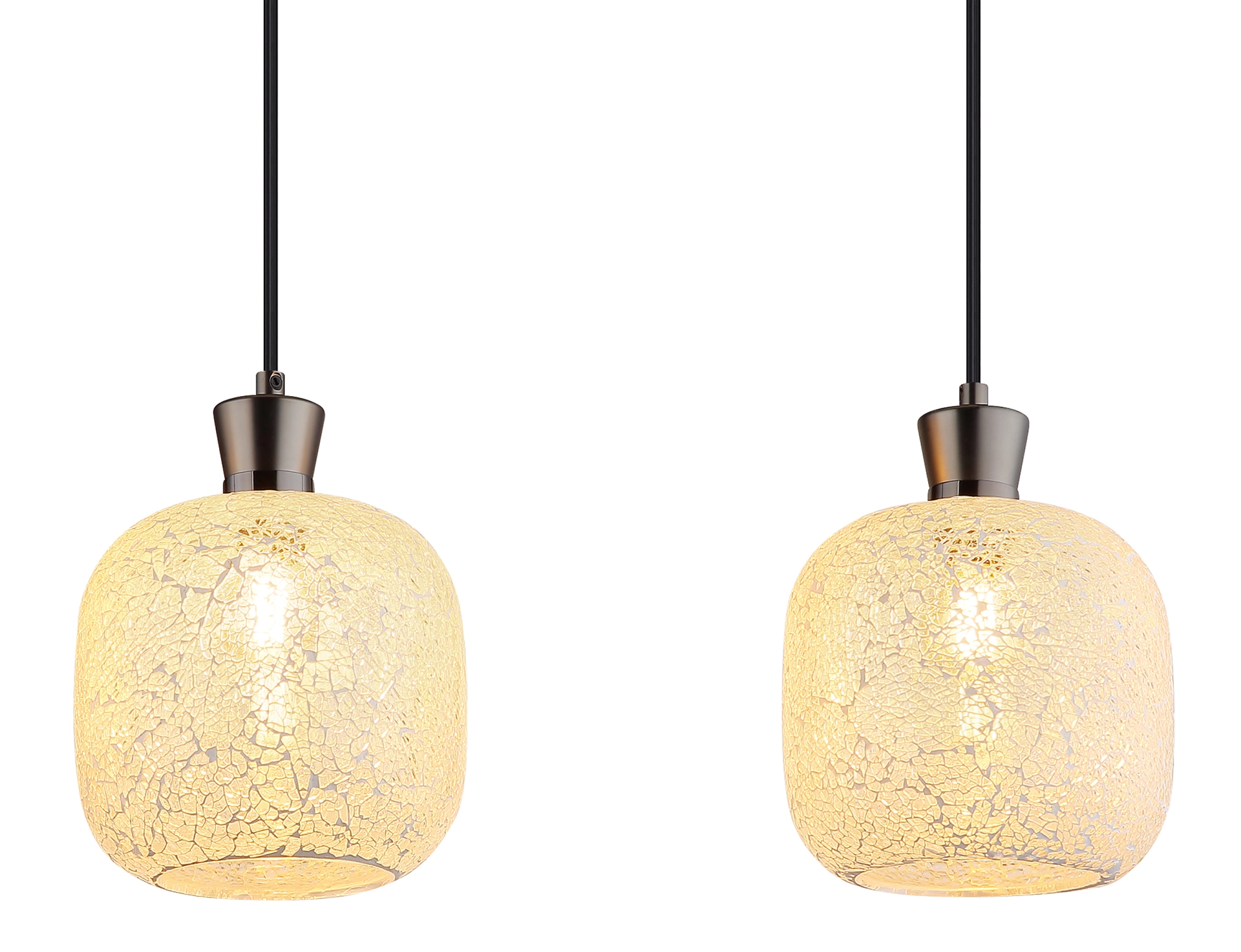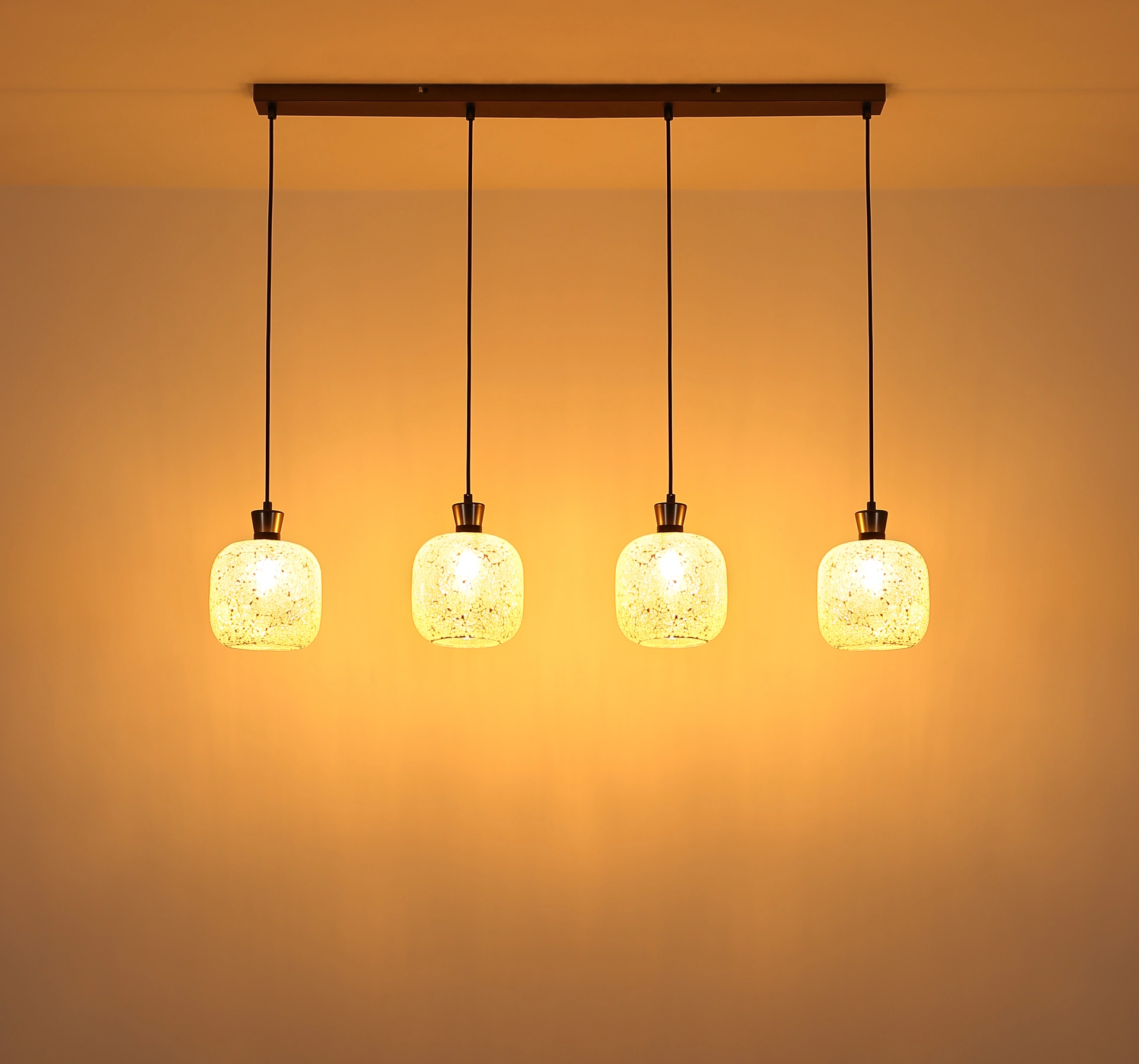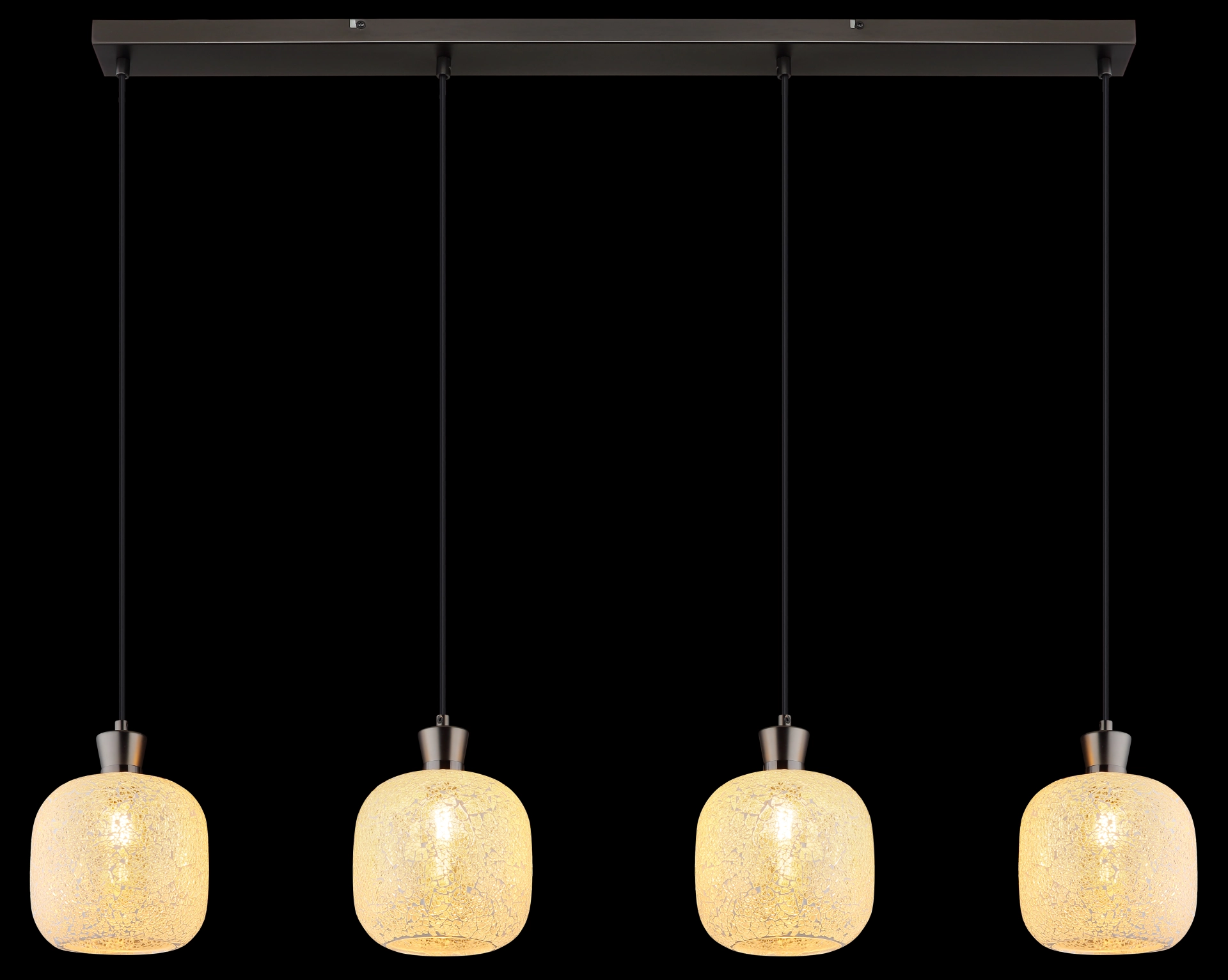METALNA CRNA-HROM MAT viseća lampa impresionira svojim elegantnim, modernim dizajnom i postavlja stilske akcente u vašoj sobi. Izdužena šina od mat crne i hromirane boje stvara minimalistički izgled, dok četiri okrugla stakla u mozaičnom dizajnu od providnog stakla stvaraju fascinantne igre svetlosti. Ova viseća lampa je opremljena sa 4 grla E14 (bez sijalica) tako da možete individualno podesiti svetlo po svom ukusu. Savršena je za trpezarijski sto, kuhinjska ostrva ili kao elegantno osvetljenje u dnevnoj sobi. Metalno kućište i mozaična stakla stvaraju skladan, ali upečatljiv kontrast koji vašoj sobi daje toplu, privlačnu atmosferu. Viseća lampa kombinuje funkcionalnost sa estetskim dizajnom i garantovano će privući pažnju u vašem domu.