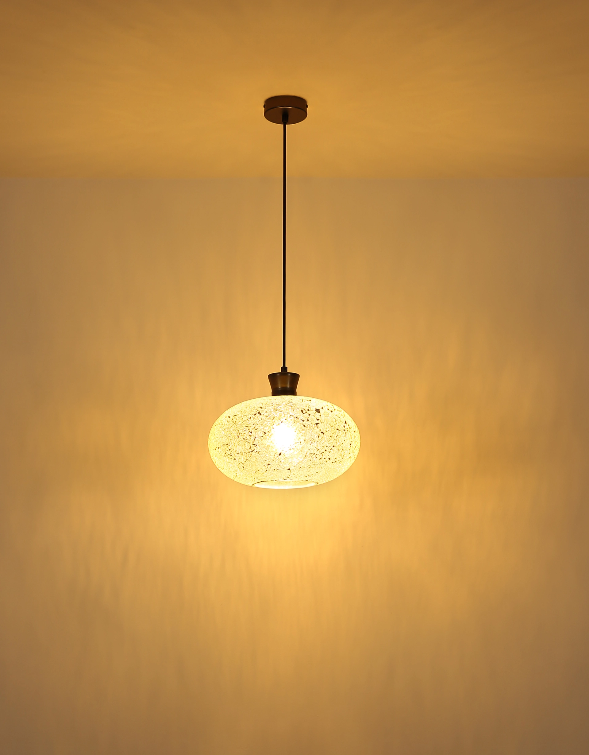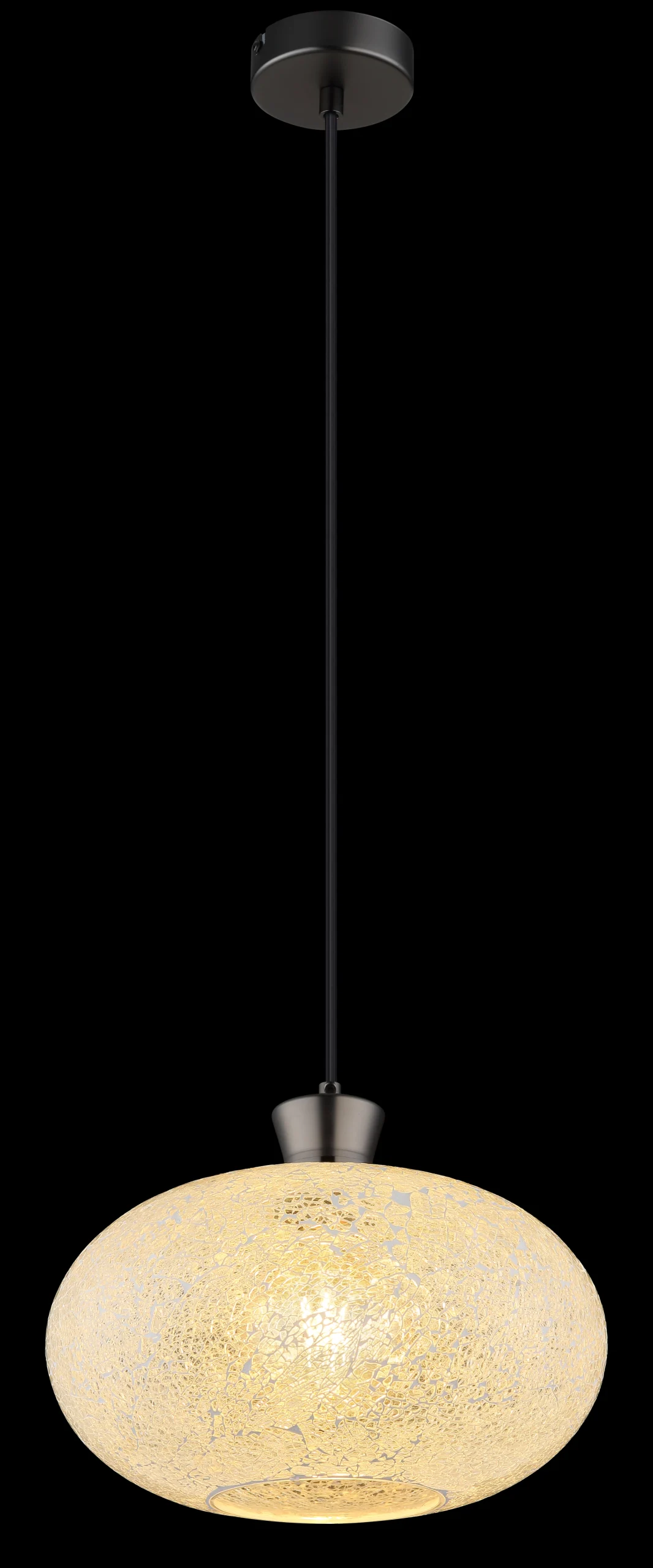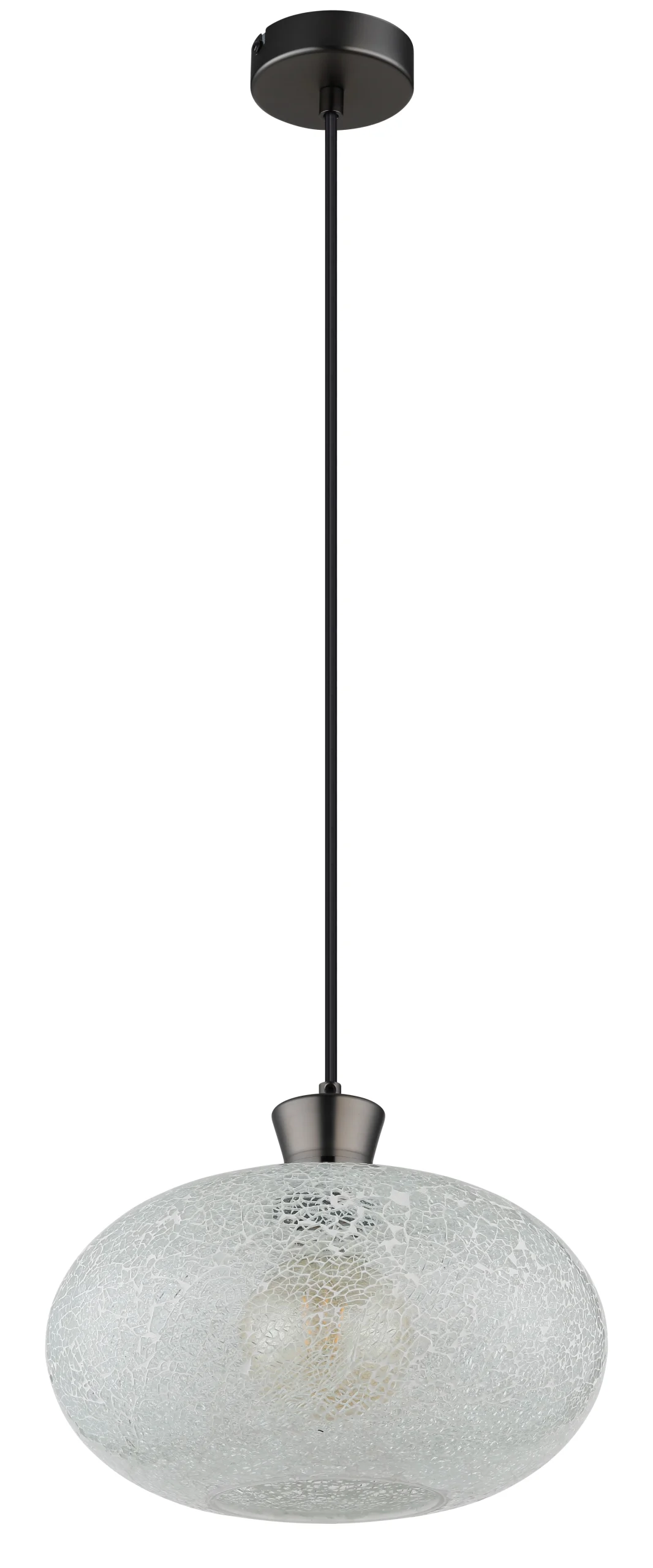 METALNA CRNA-HROM MAT viseća lampa impresionira svojim bezvremenskim dizajnom i elegantnim akcentima. Okrugli abažur napravljen od providnih mozaičnih staklenih elemenata stvara prelepu igru svetlosti i obezbeđuje prijatno osvetljenje u vašoj sobi. Metalno kućište u mat crnoj boji i hromu stvara šik kontrast sa staklom i daje lampi moderan, ali klasičan izgled. Sa E27 grlom (bez sijalice) imate slobodu da opremite lampu izvorom svetlosti koji odgovara vašim potrebama. Idealna za dnevnu sobu, iznad trpezarijskog stola ili kao akcentno osvetljenje u različitim dnevnim boravcima – ova viseća lampa se harmonično uklapa u širok spektar stilova opremanja i unosi elegantnu eleganciju u vaše sobe. Lampa postavlja stilske akcente i stvara prijatnu atmosferu osvetljenja.