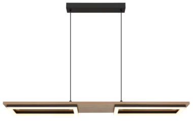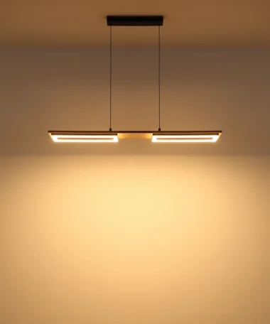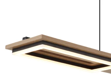 Pravougaona viseća lampa BRUCE impresionira svojim modernim dizajnom i čistim linijama. Dva pravougaona panela su harmonično postavljena jedan pored drugog, pružajući ravnomerno osvetljenje po celoj prostoriji. Mat crno metalno kućište daje svetiljci visokokvalitetan, elegantan izgled, dok kombinacija tamnog MDF-a sa efektom drveta, mat crnog metala i opal plastike stilski dopunjuje abažur. Sa dužinom od 900 mm i širinom od 180 mm, BRUCE je idealna za trpezarije, kuhinjska ostrva ili moderne dnevne prostore. Viseća lampa dolazi sa integrisanom LED diodom (uključena) koja isporučuje 1800 lumena na toploj beloj temperaturi boje od 3000 K. BRUCE kombinuje vrhunske materijale, moderan dizajn i efikasnu LED tehnologiju u elegantnoj visećoj lampi koja je i funkcionalna i dekorativna.