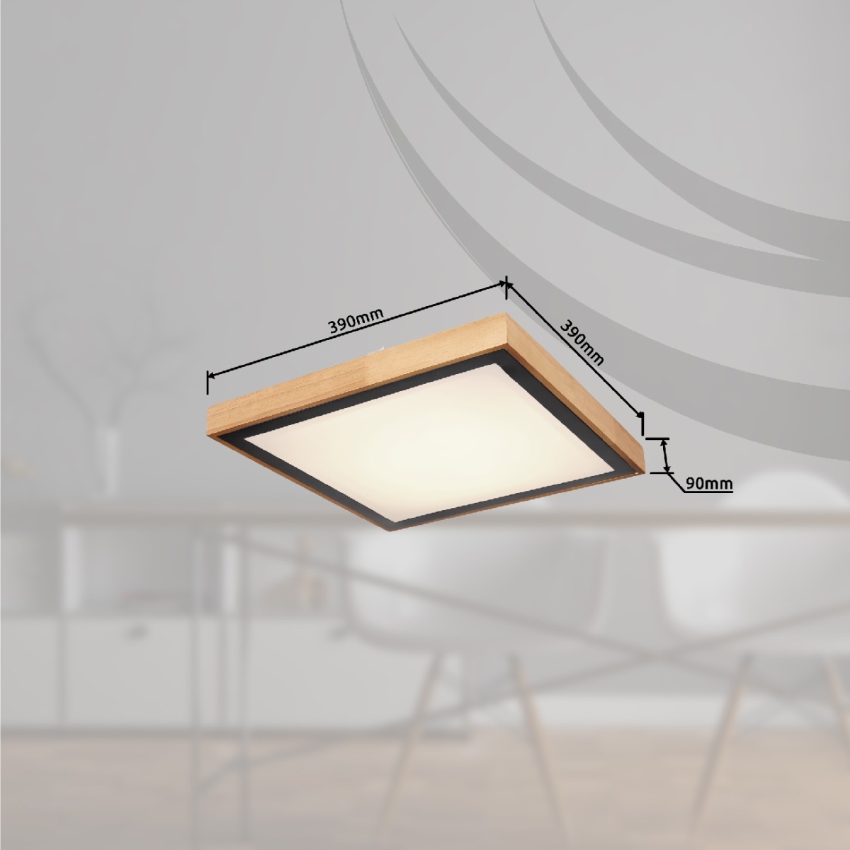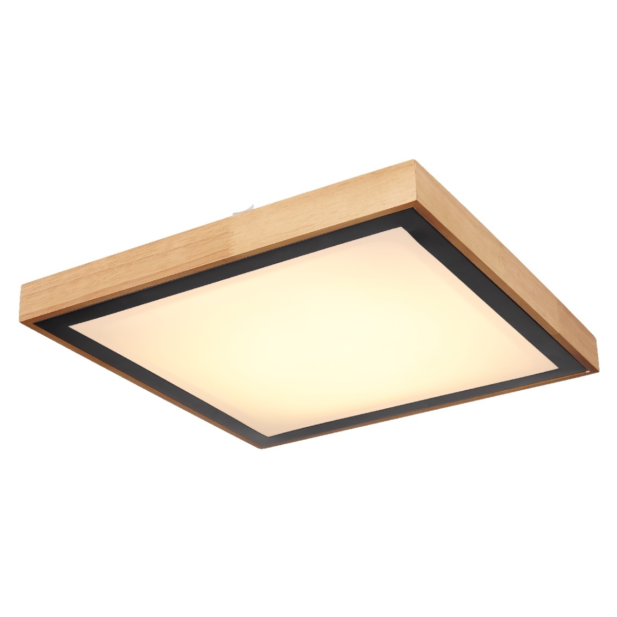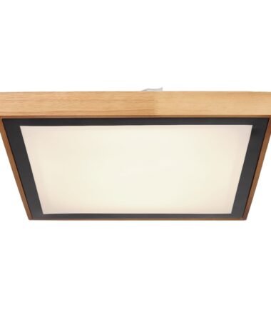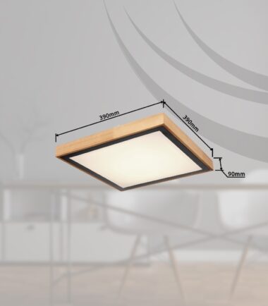 Ova kvadratna plafonska lampa inspiriše svojim odličnim dizajnom. U drvenom ramu sa bočnom stranom dužine 39 cm nalazi se LED tabla sa dodatnim metalnim ramu. Može se prigušiti i fiksirati na nivoe svetlosti: 3000 Kelvina toplo bela, 4500 Kelvina neutralna i 6000 Kelvina hladno bela.