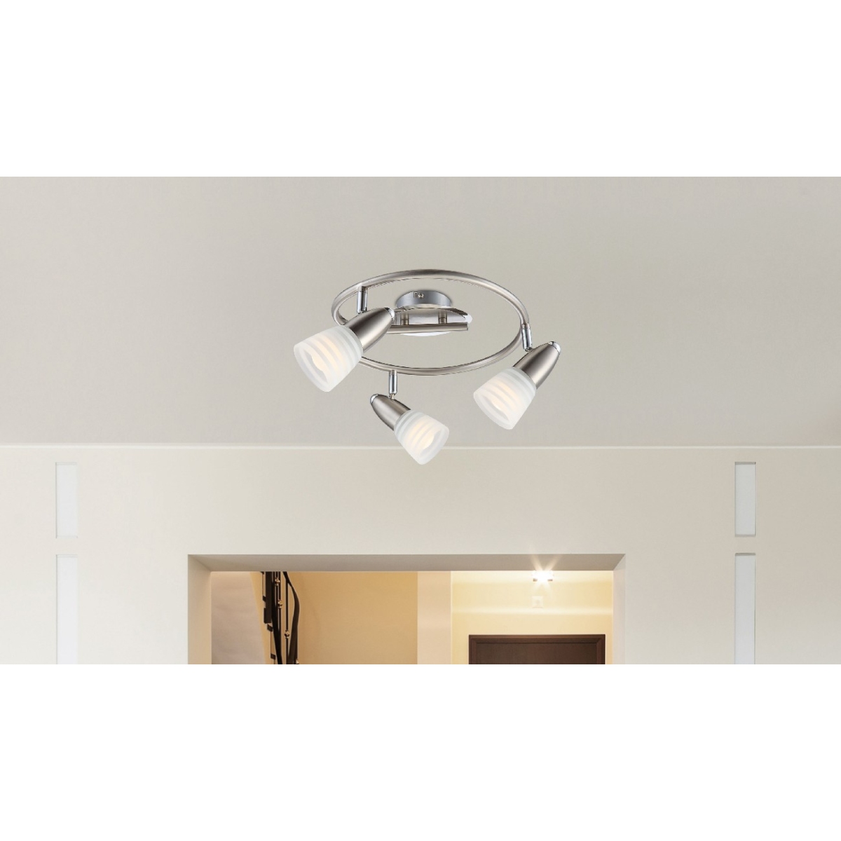 Odličana plafonska lampa koja je pogodna za svaku upotrebu. Bilo da je kuhinja, hodnik ili dnevna soba, ovaj reflektor, prečnika 29 cm, odgovara bilo gde. Nikl-mat hromirane komponente i satinirano-gotovo opalno staklo daju mu svoju posebnu harizmu. Pokretna grla omogućavaju 1200 lumena jako i 3000K toplo belo svetlo da savršeno osvetli prostoriju.