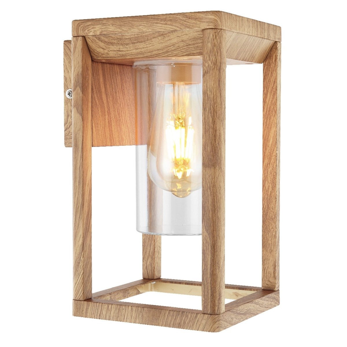 Ova zidna lampa na otvorenom iz serije CANDELA je prelep dodatak vašem vrtu, popločanom dvorištu ili balkonu. Velika spoljašnja lampa veličine 27 cm sastoji se od pravougaonog aluminijumskog rama u drvenom izgledu (15×15 cm), koji je obezbeđen E27 grlom iznutra. Ona je uokvirena providnim plastičnim cilindrom i može biti opremljeno odgovarajućom LED sijalicom po vašem izboru. To vam pruža mogućnost da pojedinačno odredite boju svetla i jačinu. Sa drugim modelima iste serije možete napraviti prijatnom ambijent u vašem prostoru na otvorenom.