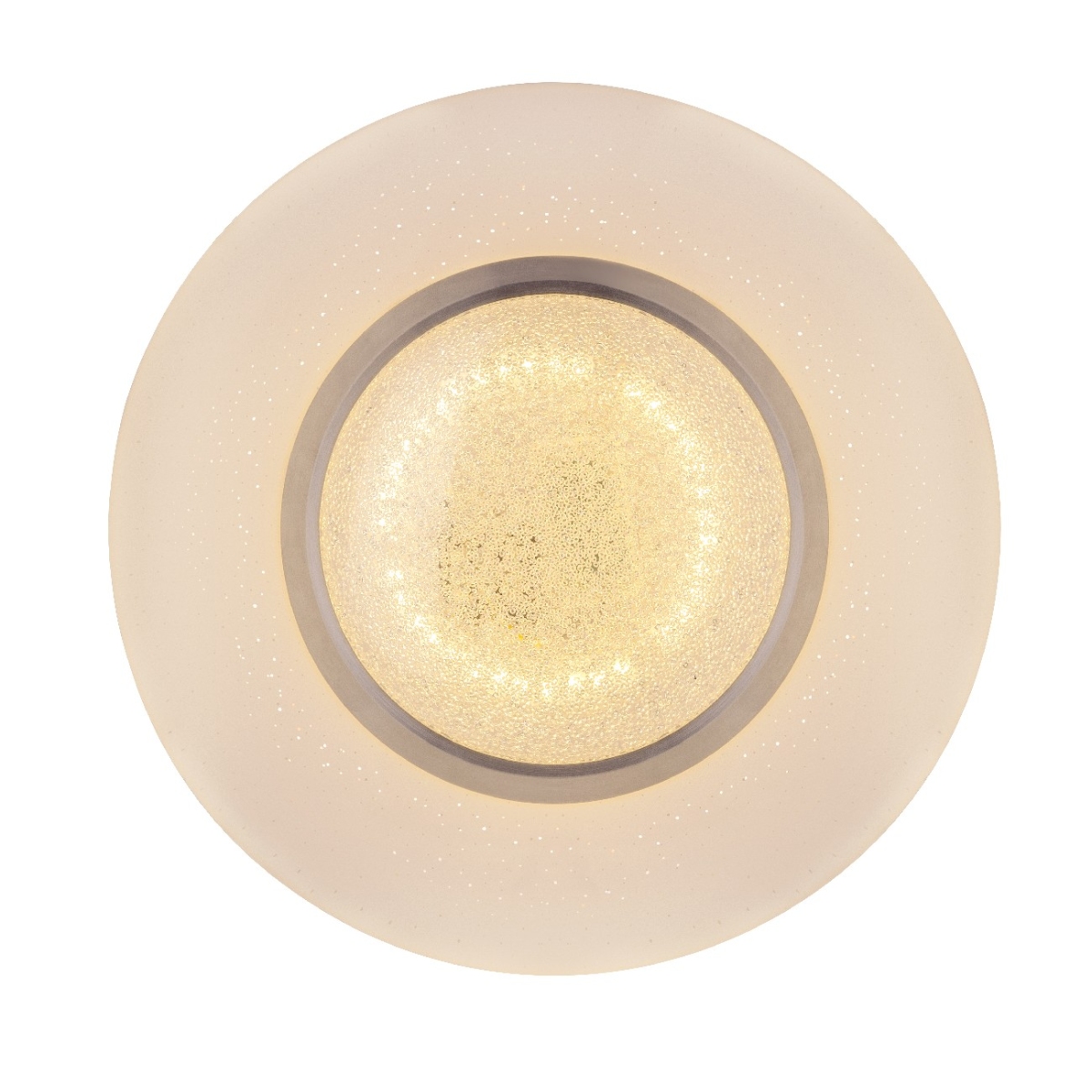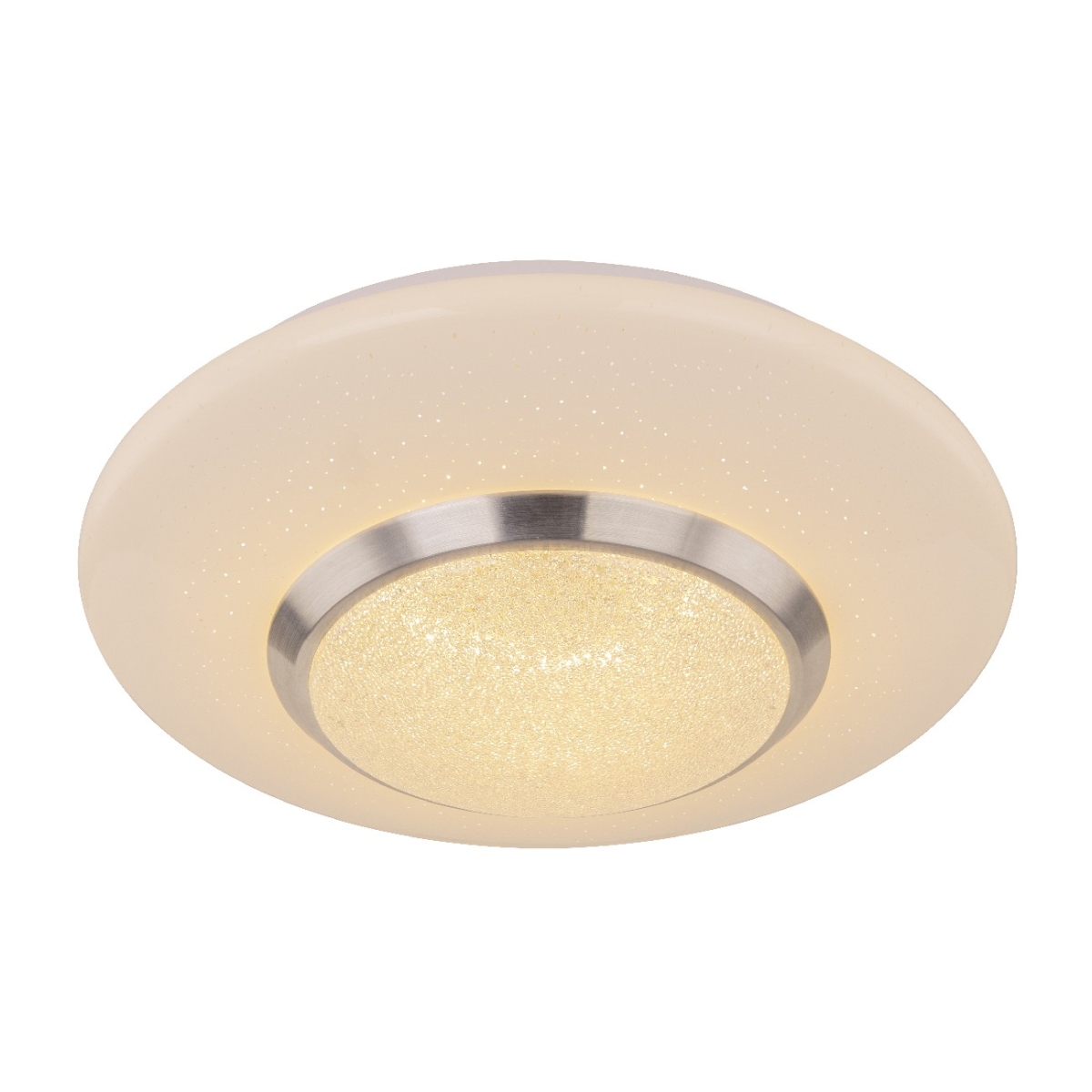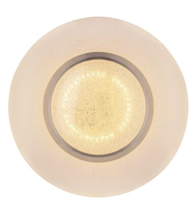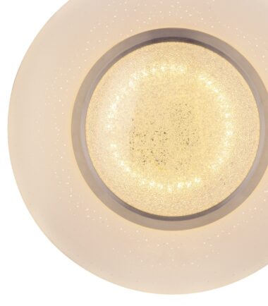 Ova prelepa okrugla plafonska lampa (34cm) serije CANDIDA postavlja svetlucave akcente na vaša četiri zida. Unutar lampe se nalaze plastični kristali, koji impresivno odražavaju svetlost ove bele plafonske lampe sa opalnim akrilnim staklom uključujući efekat zvezdanog neba. Savršeno se uklapa u svaki životni stil, možete je postaviti u spavaću sobu, dnevni boravak, trpezariju ili dečiju sobu. Lampa ima uključenu LED sijalicu od 18W i pruža jako svetlo od 1060 lumena sa prijatno toplom bojom svetlosti od 3000 Kelvina. Sa ostalim modelim ove serije možete upotpuniti sliku u vašem životnom prostoru.