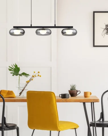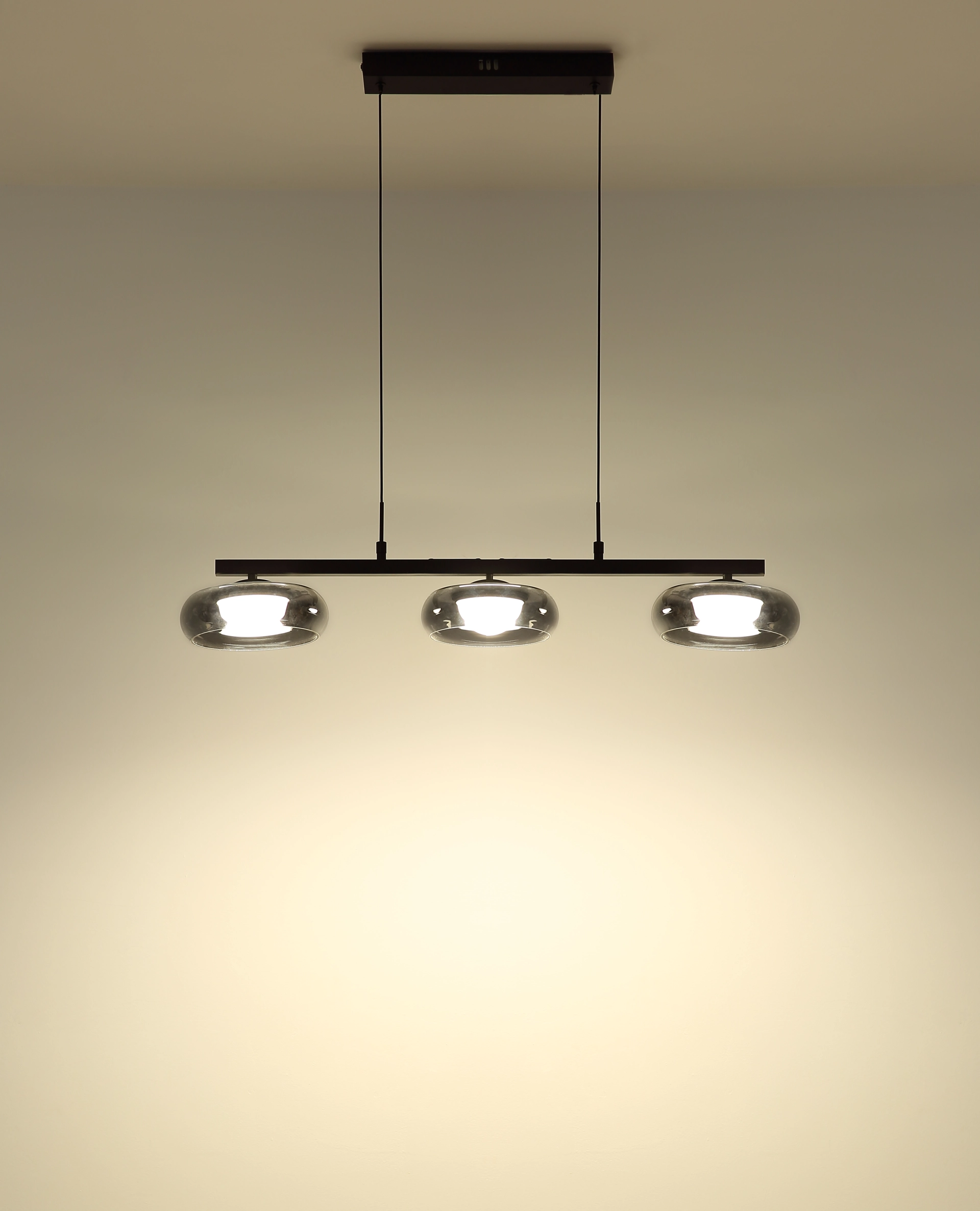 Izdužena viseća lampa CARLENE kombinuje moderan dizajn sa inovativnom tehnologijom i visokom funkcionalnošću. Pravi snop sa tri okrugla, ravna abažura impresionira čistim linijama i visokokvalitetnim kućištem od mat crnog metala, dodajući stilske akcente svakoj prostoriji. Abažuri su napravljeni od dimljenog stakla kombinovanog sa opalnim akrilom, nežno raspršujući svetlost i pružajući prijatno osvetljenje bez odsjaja. Sa svetlosnim izlazom od 1.785 lumena i promenljivom temperaturom boje (CCT) od 3.000 do 6.000 Kelvina, CARLENE se fleksibilno prilagođava različitim raspoloženjima i potrebama. Boje se mogu fiksirati, što vam omogućava da kreirate personalizovanu atmosferu osvetljenja. Zahvaljujući praktičnoj funkciji memorije, svetlo pamti poslednju podešenu boju svetlosti i osvetljenost. Uključujući LED tehnologiju koja štedi energiju, CARLENE je savršen izbor za moderne životne i radne prostore koji cene dizajn i funkcionalnost.