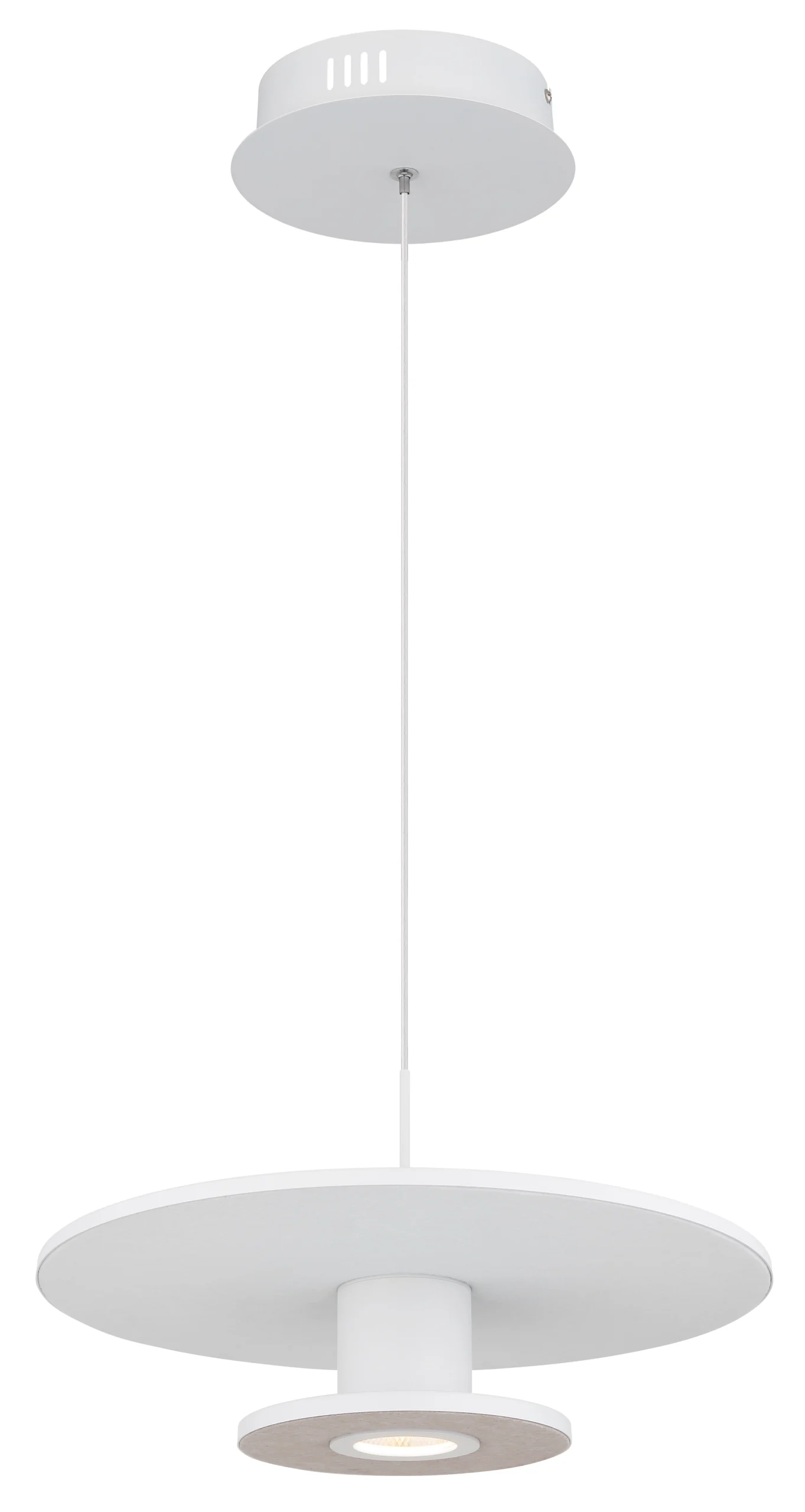 Moderna elegancija: CARTER je stilsko rešenje za vaše osvetljenje. Okrugli oblik i ravni diskovi prekriveni filcom rezultiraju jedinstvenim dizajnom koji je savršen za moderne prostore. Viseća lampa ima metalno kućište u belom mat laku i abažur od aluminijuma u belom mat laku. Tekstilni premaz je u svetlo sivoj i bež boji, što stvara bezvremenski i elegantan izgled. Sa LED osvetljenjem sa funkcijom memorije, osvetljenje se može podesiti na tri nivoa: jače osvetljenje, jače osvetljenje ili oba zajedno. 1XLED rešenje pruža efikasno i energetski štedljivo osvetljenje. Toplo osvetljenje u boji od 3000K stvara prijatnu atmosferu.