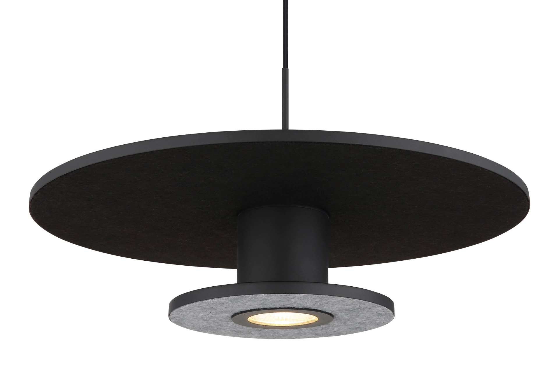 Elegantna viseća lampa: VISEĆA LAMPA CARTER METAL BLACK MATT je stilsko i moderno rešenje za vaše osvetljenje. Okrugli oblik i ravni diskovi prekriveni filcom rezultiraju jedinstvenim dizajnom koji je savršen za zahtevne prostore. Viseća lampa ima metalno kućište u crnom mat laku i abažur od aluminijuma u crnom mat laku. Tekstilni presvlaka je crne i sive boje, što stvara elegantan i bezvremenski izgled. Sa LED osvetljenjem sa funkcijom memorije, osvetljenje se može podesiti na tri nivoa: svetlo manje, svetlo više ili oba zajedno. 1XLED rešenje pruža efikasno i energetski štedljivo osvetljenje.