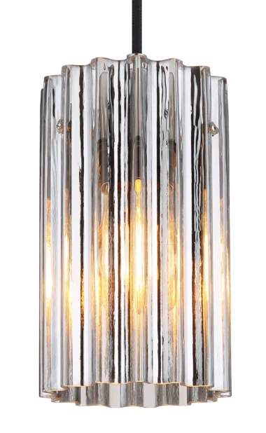 Viseća lampa CAYDEN kombinuje moderan dizajn sa elegantnim osvetljenjem. Okrugli stakleni cilindar sa žlebljenom strukturom i mat crno niklovano kućište stvaraju stilski i savremen izgled. Idealna za trpezariju ili dnevnu sobu, poklopac od providnog matiranog stakla pruža prijatnu raspodelu svetlosti. Grlo E27 omogućava fleksibilan izbor izvora svetlosti.