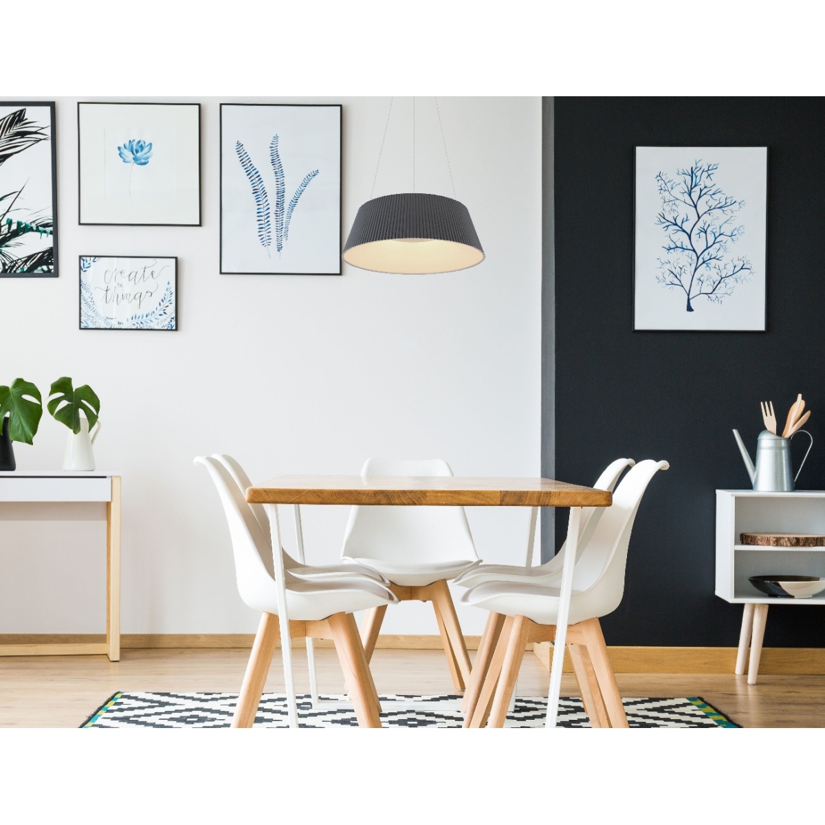 Klasična i istovremeno moderna serija CROTONE poentira svojim jednostavnim i bezvremenim dizajnom. Okrugla visilica (Ø46cm) sa odgovarajućom kombinacijom boje antracitna spolja i opala unutar abažura osigurava neupadljivu lepotu. Pomoću uključenog daljinskog upravljača možete lako i jednostavno kontrolisati viseću lampu iz daljine. Bilo da želite da prigušite svetlo u zavisnosti od situacije i raspoloženja (max. 1900 lumena), ili da podesite boju svetla na jednom od raspoloživih nivoa između toplog belog 3000 Kelvina i hladnog belog 6000 Kelvina.
