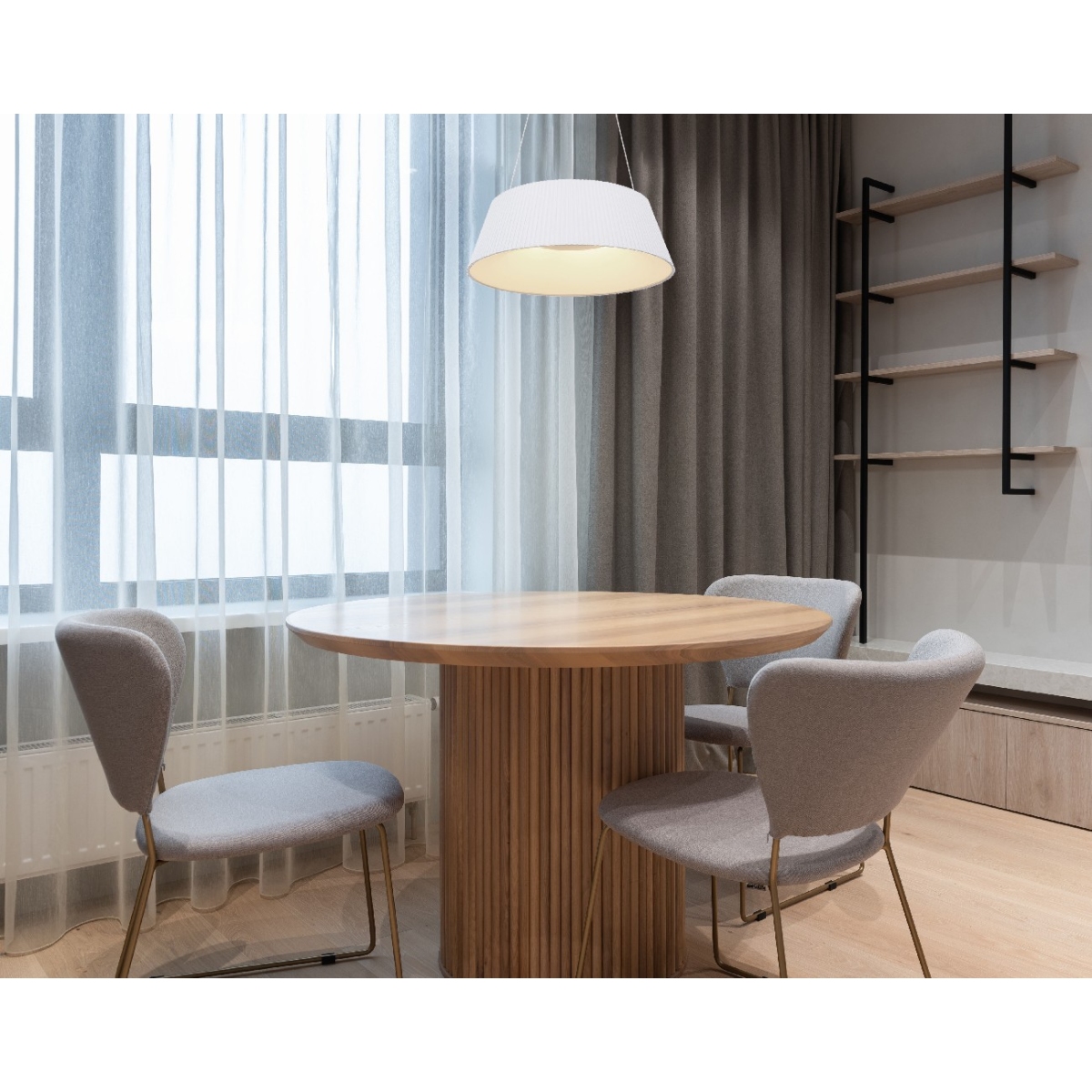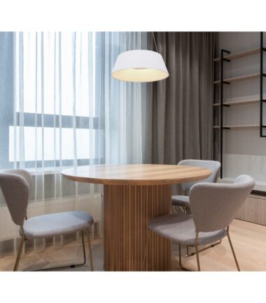 Klasična i istovremeno moderna serija CROTONE poentira svojim jednostavnim i bezvremenim dizajnom. Okrugla visilica (Ø46cm) sa odgovarajućom kombinacijom boja spoljašnje bele i unutrašnje opalne, abažur osigurava neupadljivu lepotu. Pomoću uključenog daljinskog upravljača možete lako i jednostavno kontrolisati viseću lampu iz daljine. Bilo da želite da prigušite svetlo u zavisnosti od situacije i raspoloženja (max. 1900 lumena), ili da podesite boju svetla na jednom od raspoloživih nivoa između toplo belog 3000 Kelvina i hladno belog 6000 Kelvina.