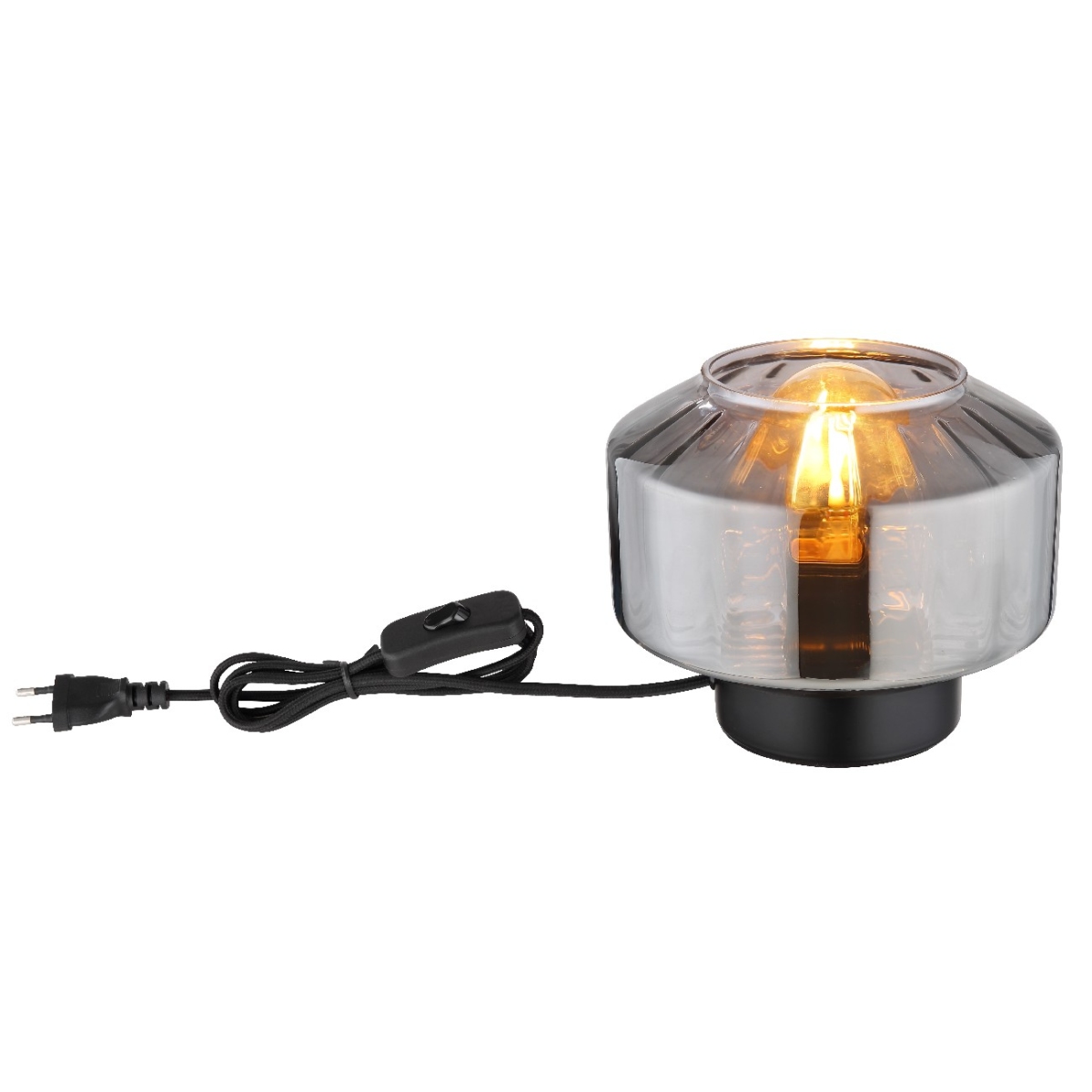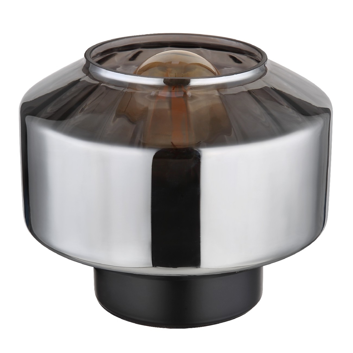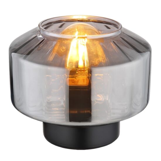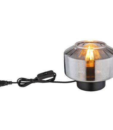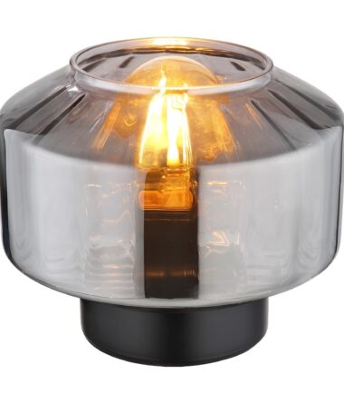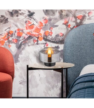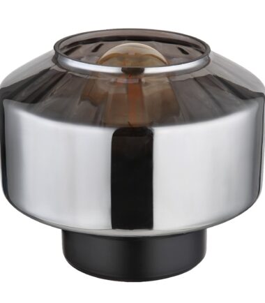 Ova prelepa stona lampa inspiriše sjajnim dizajnom. Iz okrugle crne osnove viri E27 grlo preko koga je staklo u boji dima (Ø 18 cm). Grlo E27 vam omogućava da odredite boju svetla i jačinu do maksimalne snage od 40W. Zbog uštede energije i dugovečnosti preporučujemo LED sijalice.