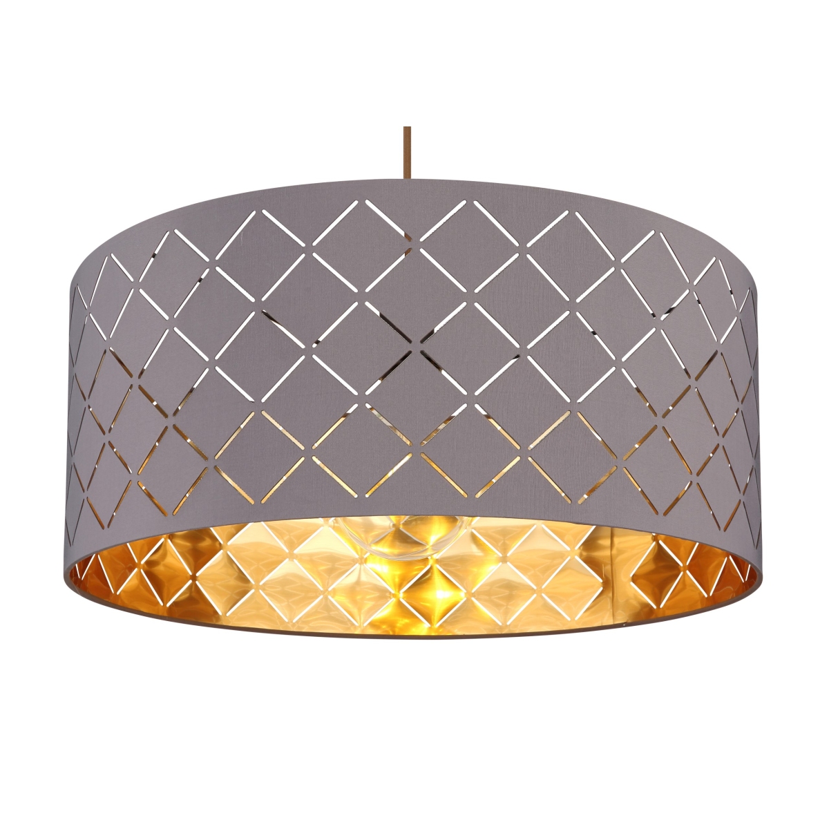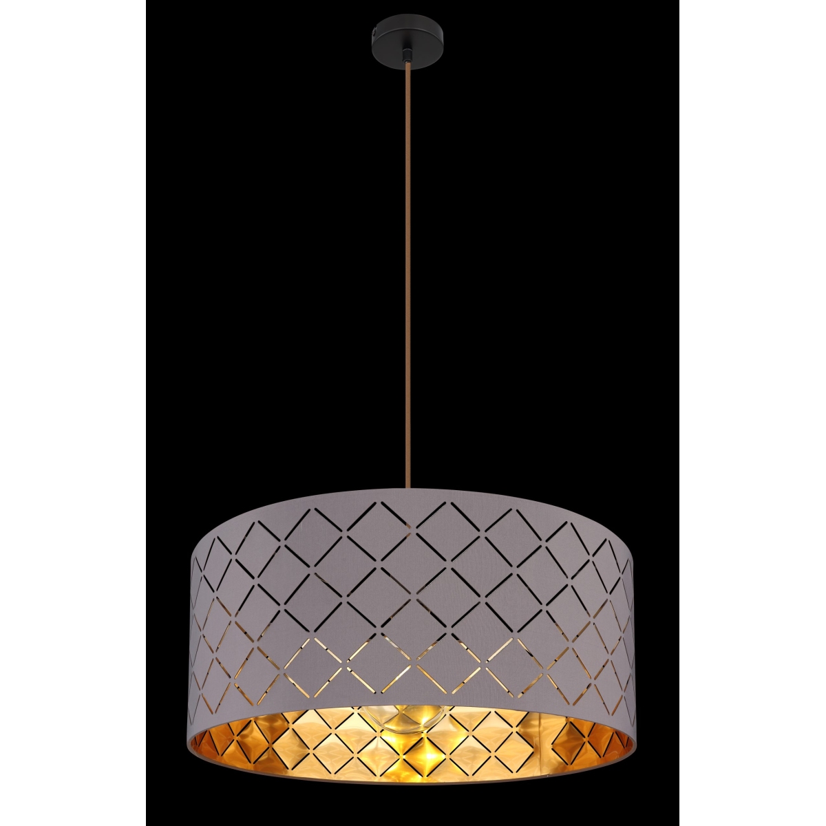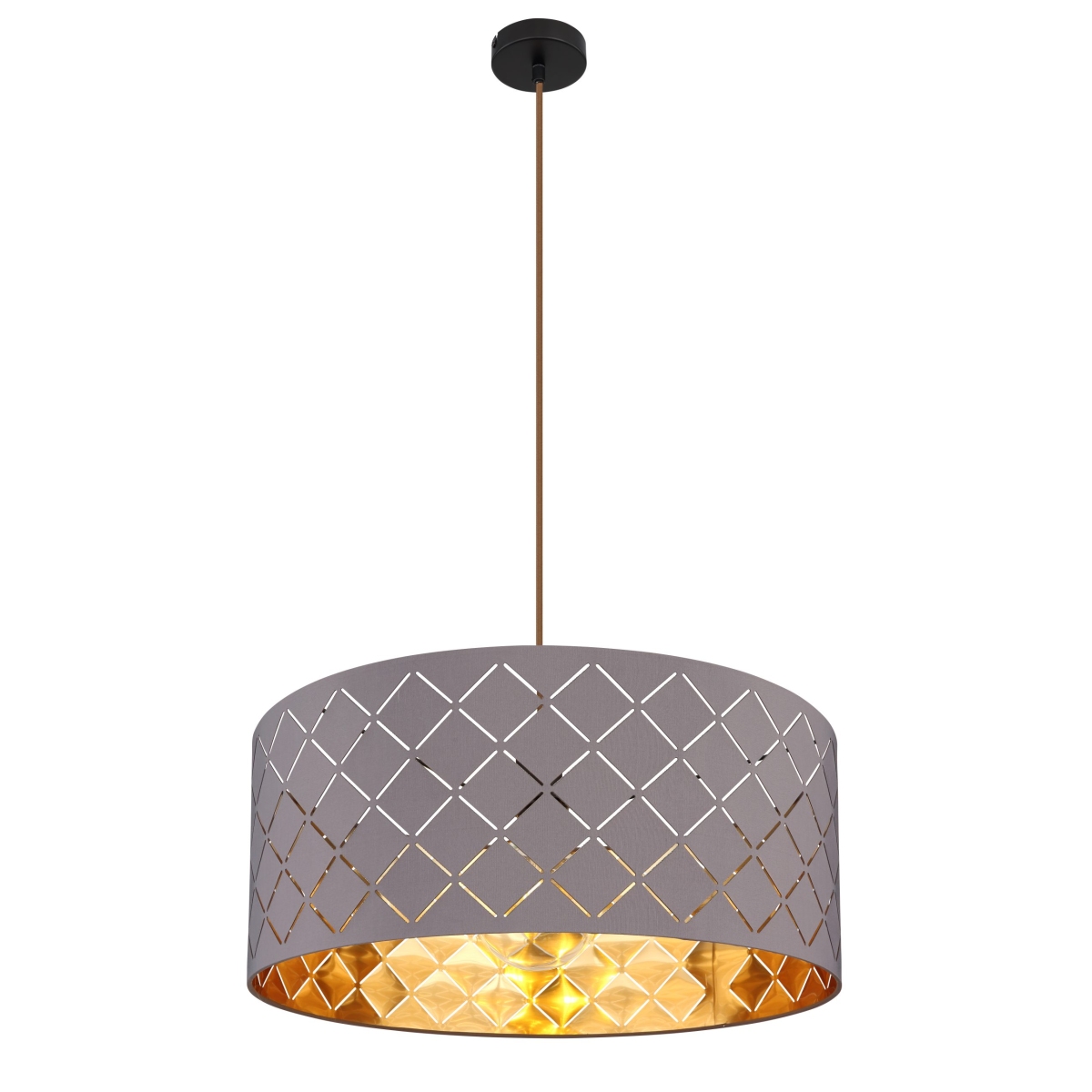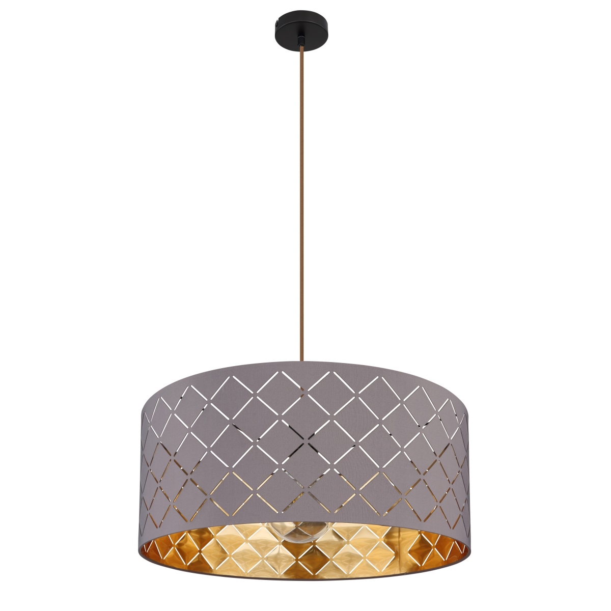 Ova visilica iz serije CINDY (ø 55 cm) je divan dodatak vašem enterijeru. Sastoji se od sivog tekstilnog abažura sa detaljima u obliku mreže, koja visi na kablu do 140 cm od plafona i može biti opremljena odgovarajućim sijalicama po vašem izboru, što vam pruža mogućnost da pojedinačno odredite laganu boju i jačinu. Sa ostalim modelima iste serije možete upotpuniti celokupnu sliku u svom domu.