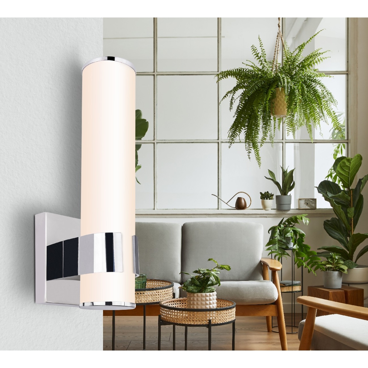 Ova ekskluzivna zidna lampa CIRAS izgleda veoma elegantno zbog ciljane upotrebe hromiranih elemenata. Zbog opalno-belog stakla, koje je okruženo hromiranim prstenom, svetlost dolazi na svoje. Integrisana LED sijalica od 12 vati obezbeđuje 800 lumena prijatne neutralne bele boje od 4000 Kelvina. Zahvaljujući IP44, ovaj lampa dugačka 32 cm je takođe idealana za kupatilo.