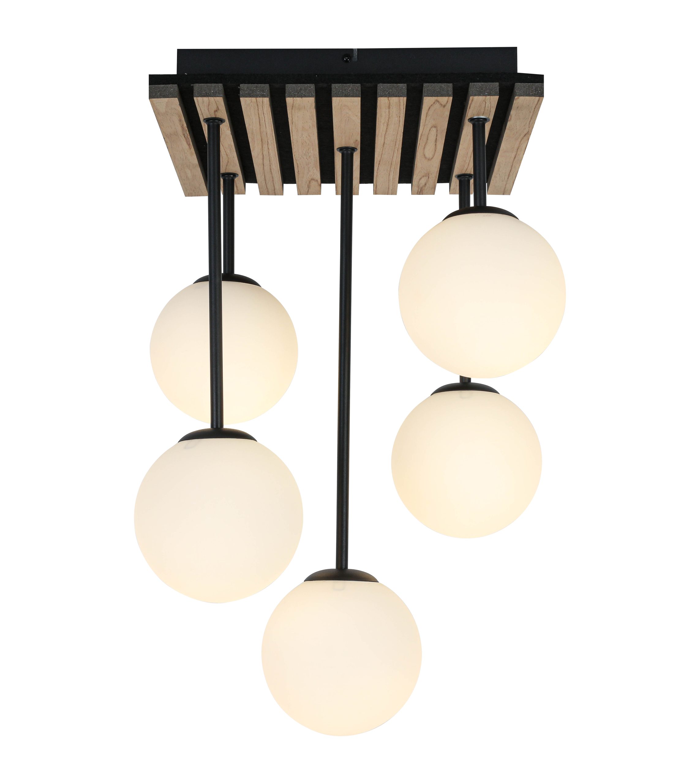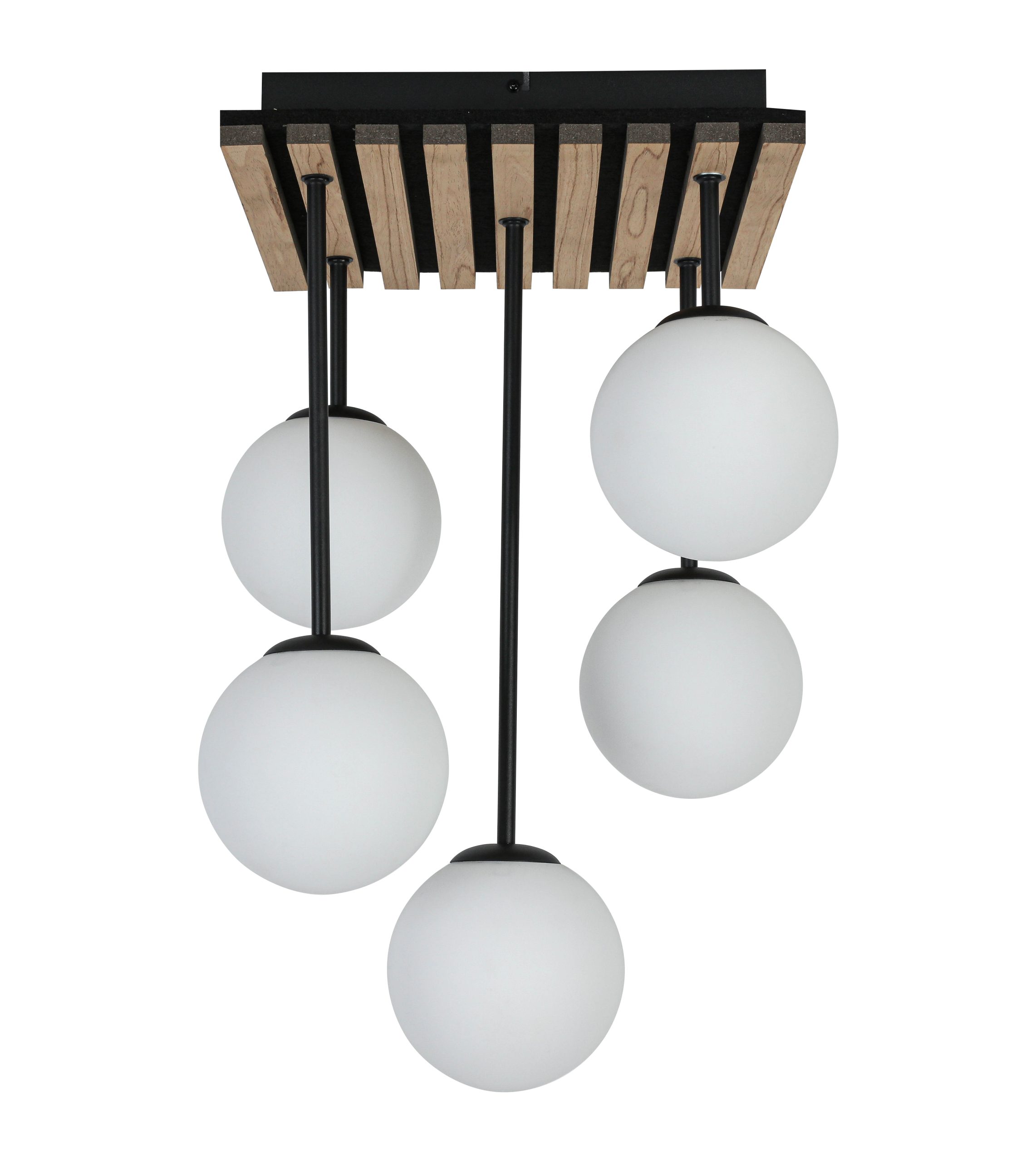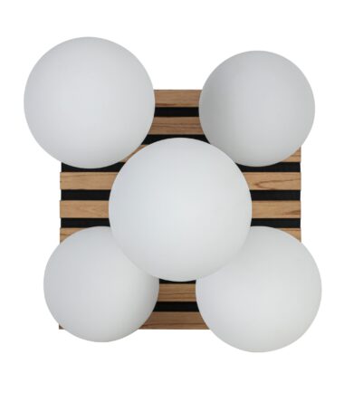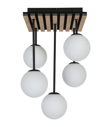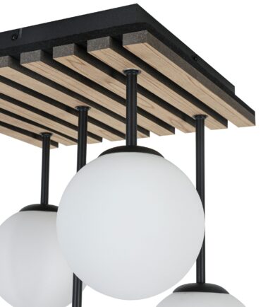Plafonska lampa CLARA ističe se kombinacijom drveta i crnog metala. Na pravougaonu plafonsku osnovu nastavlja se pet staklenih kugli. Savršeno će se uklopiti u enterijere i naglasiti njihov karakter. Zahvaljujući svom jedinstvenom izgledu, idealno će ispuniti ne samo funkciju rasvete, već i dekorativnu. Idealna je za dnevne sobe i iznad trpezarijskog stola.