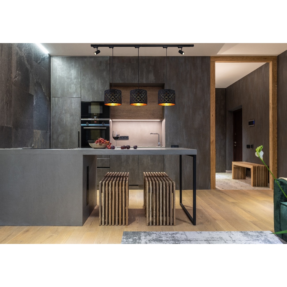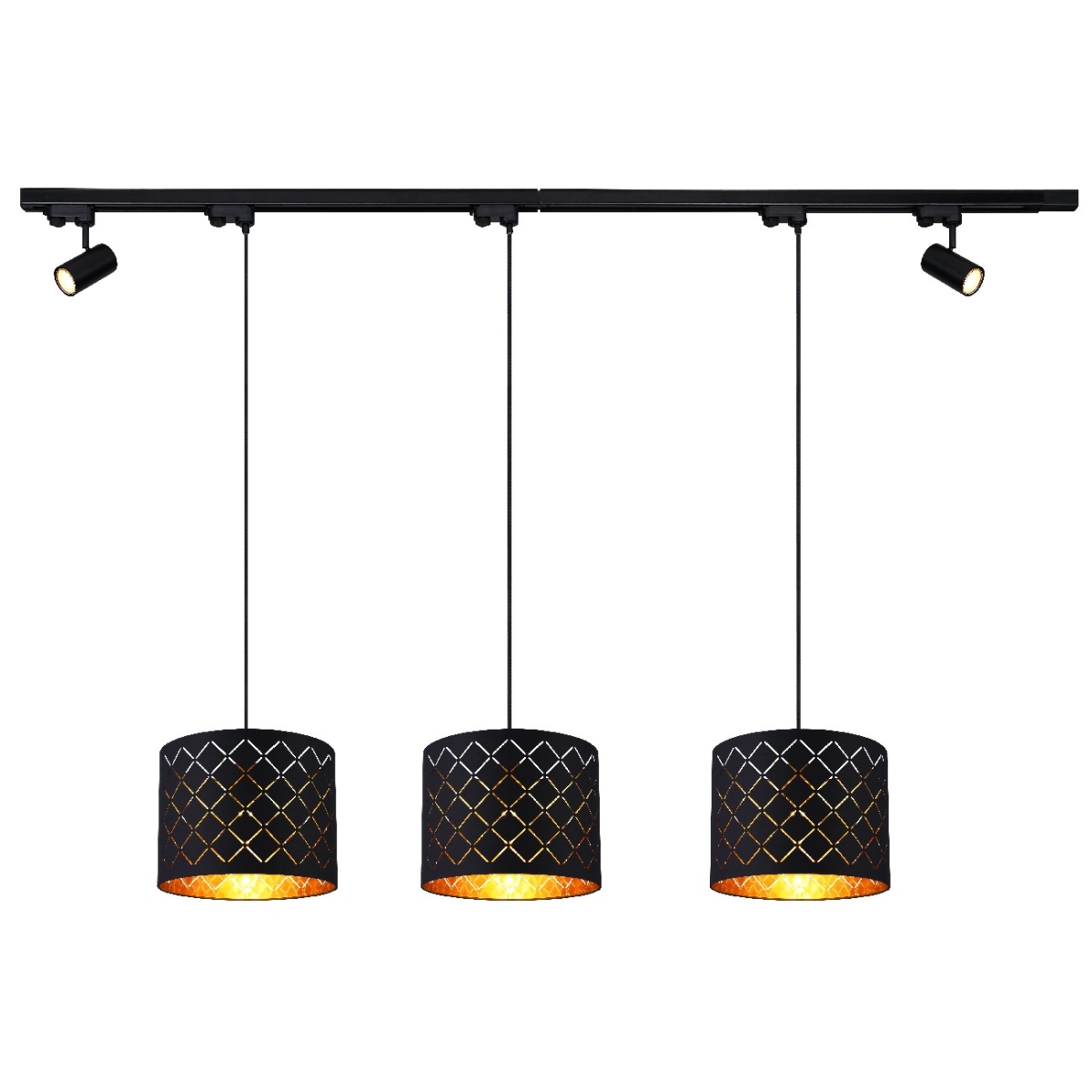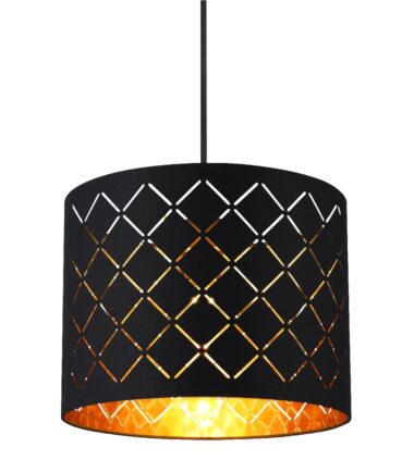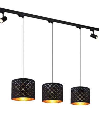 Ova crna metalna visilica predstavlja čist glamur. Visilica sa tri grla ima abažure sa ukrasnim detaljina. Svetlost ove prelepe viseće lampe divno se reflektuje kroz akril zlatne boje pričvršćen za unutrašnjost abažura. Pored toga, postoji rotirajuća GU10 sijalica na oba kraja skoro 2m dugačke metalne grane. Ova visilica prodire oko 120cm u prostor. E27 grlo vam daje slobodan izbor u smislu intenziteta svetlosti i boje prilikom odabira sijalica (uzvik. 3xE27, 40 vati). Zbog njihove dugovečnosti i uštede energije preporučujemo LED sijalice. Ova tradicionalna lampa je posebno pogodna za spavaće sobe, dnevne sobe i trpezarije. Ostali modeli ove serije upotpunjuju vaš životni prostor.