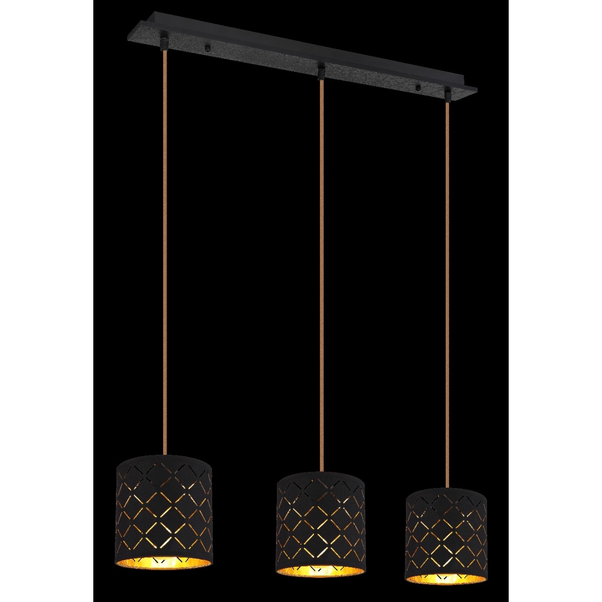 Ova visilica iz serije CALRKE (Ø20cm) ubeđuje svojim prelepim dizajnom napravljenim od crnog i zlatnog. Visilica se sastoji od 3 abažura sa ukrasnim detaljima, od kojih je svako opremljen E27 grlom i visi sa plafona na kablovima zlatne boje. Visina lampe može se podesiti na ukupno 160 cm. Uz pomoć E27 grla možete koristiti sijalice po vašem izboru, do maksimalne snage od 40 vati. Sa drugim modelima ove serije možete ulepšati svoj dnevni boravak.